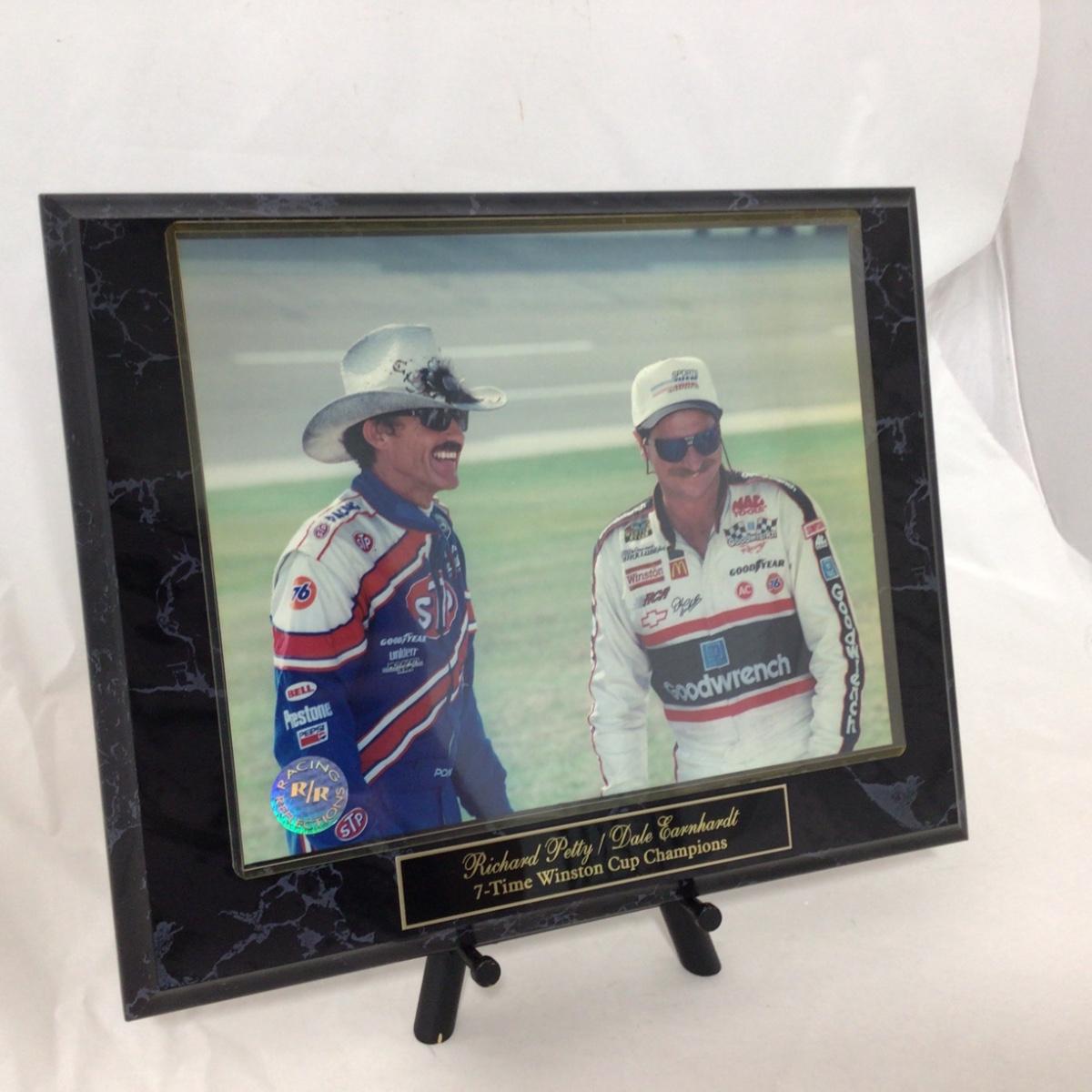 NASCAR’s Richard Petty and Dale Earnhardt Sr. Plaque with engraved plaque. Please see photos for details and condition. ::: Shipping is available on this lot. If you require shipping you must let us know at the close of the auction. We will coordinate with you after the item has been won. Shipping fees will include insurance up to or exceeding the value of all items being mailed. If you have any questions regarding this lot please contact the auctioneer either via this website, by direct email or by phone. PICK UP TIMES and other important information can be found in the TERMS and DESCRIPTION of the auction. Please take a look for pertinent information. Thanks!