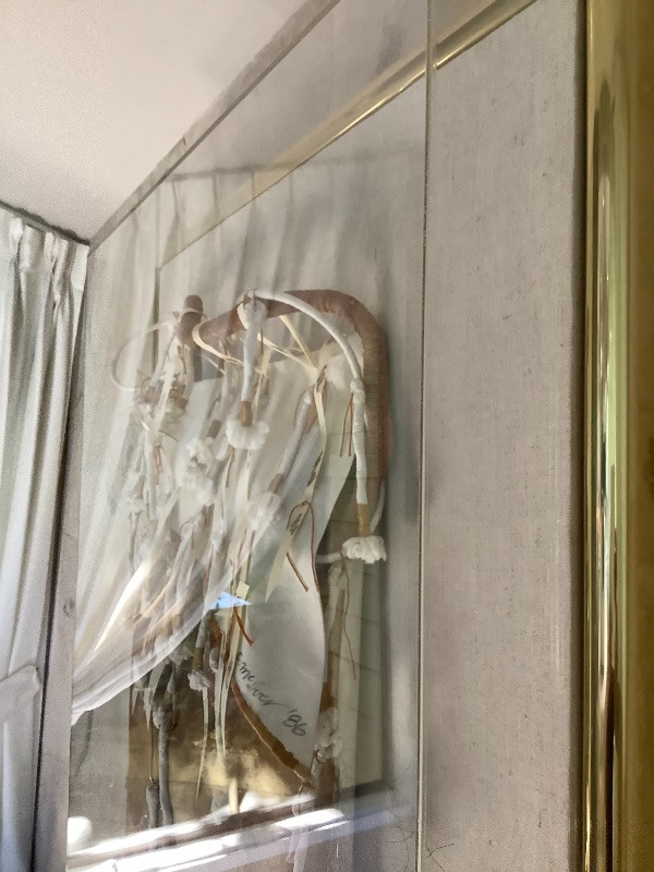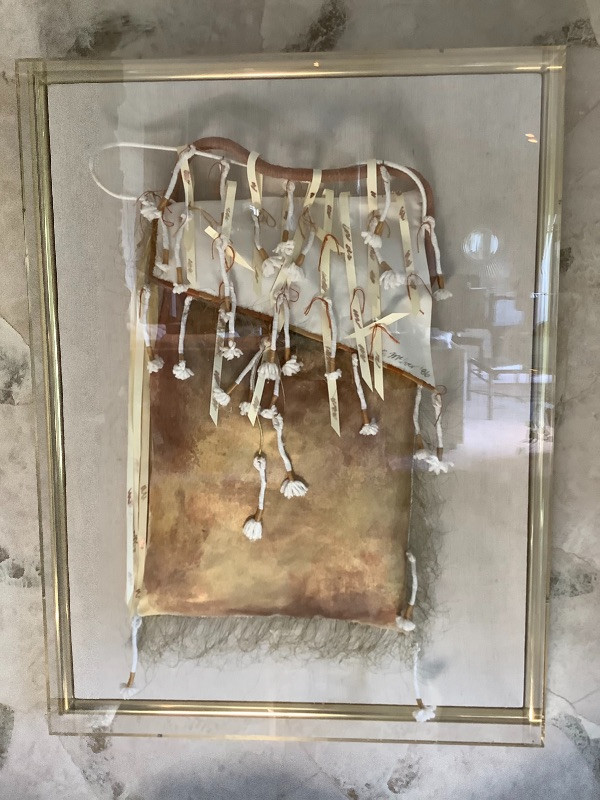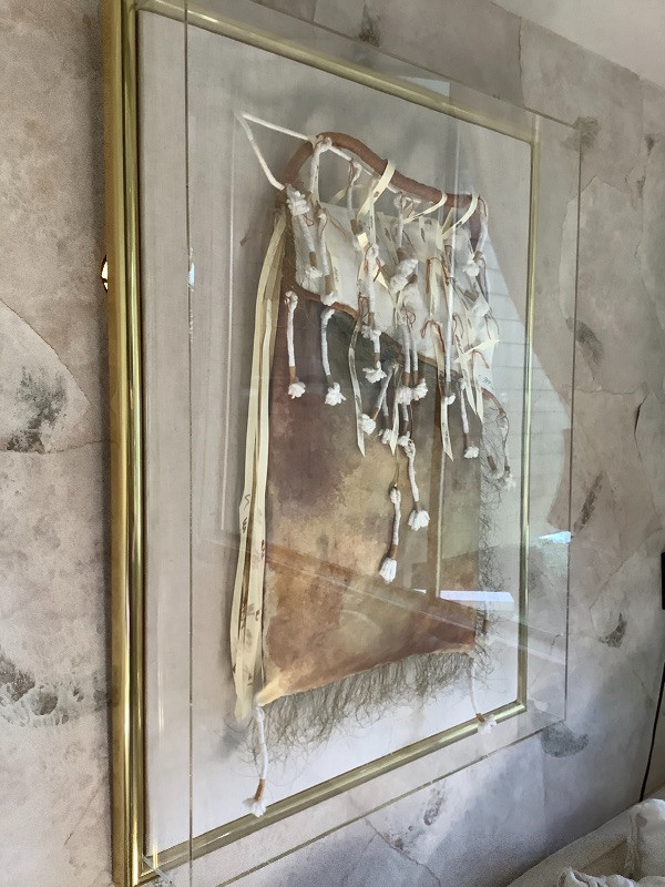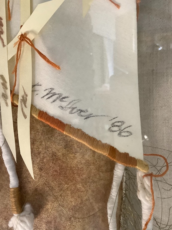 Native American style framed wall art original is signed by artist F McIver 1986. Measures 40.5” x 30.5” x 5.5” deep