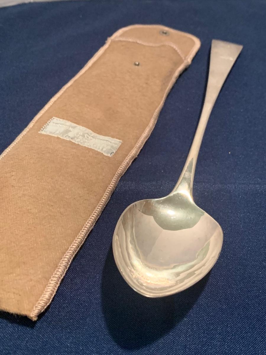 12.5” Serving Spoon - Weighs 96 grams. Selling as is, as found in the estate.