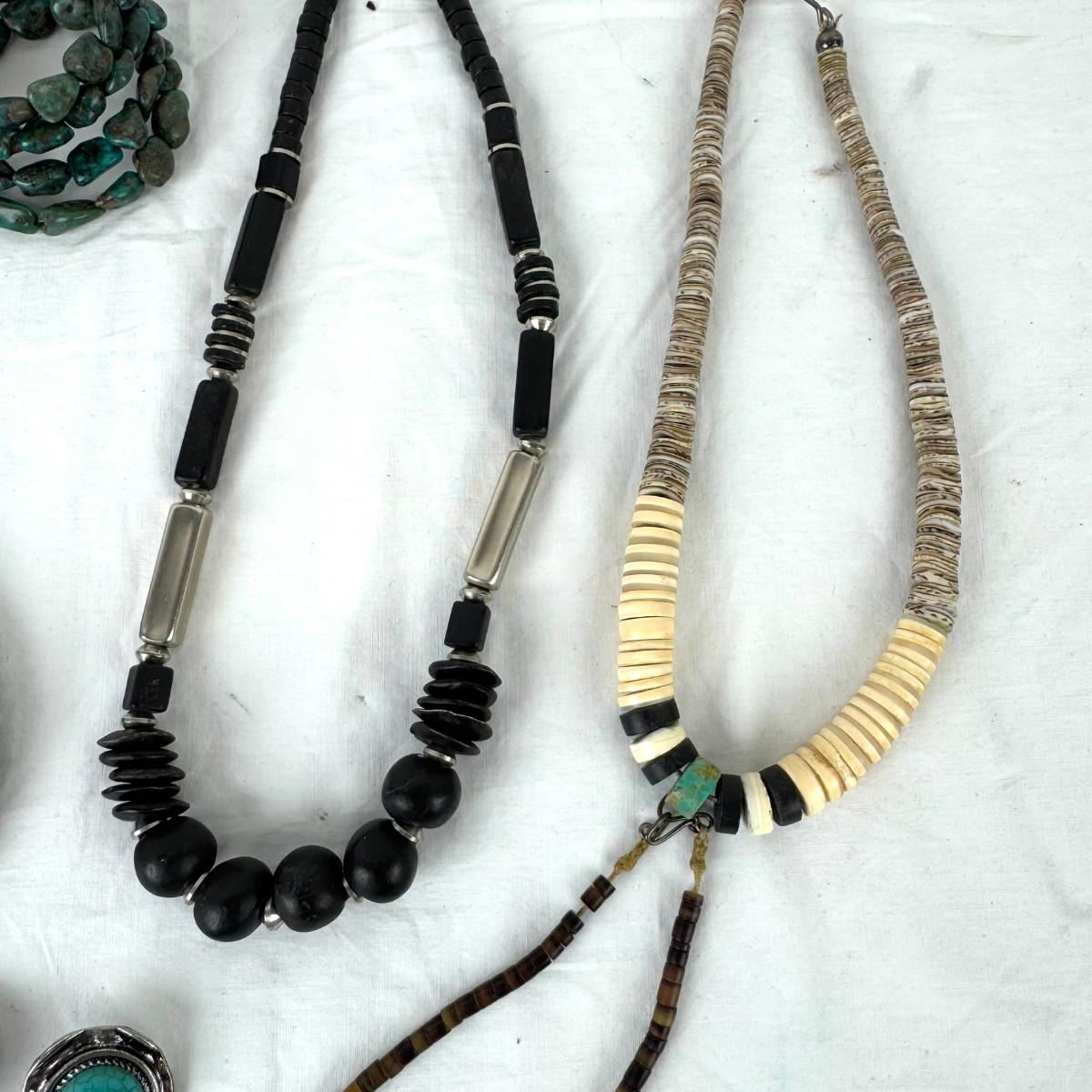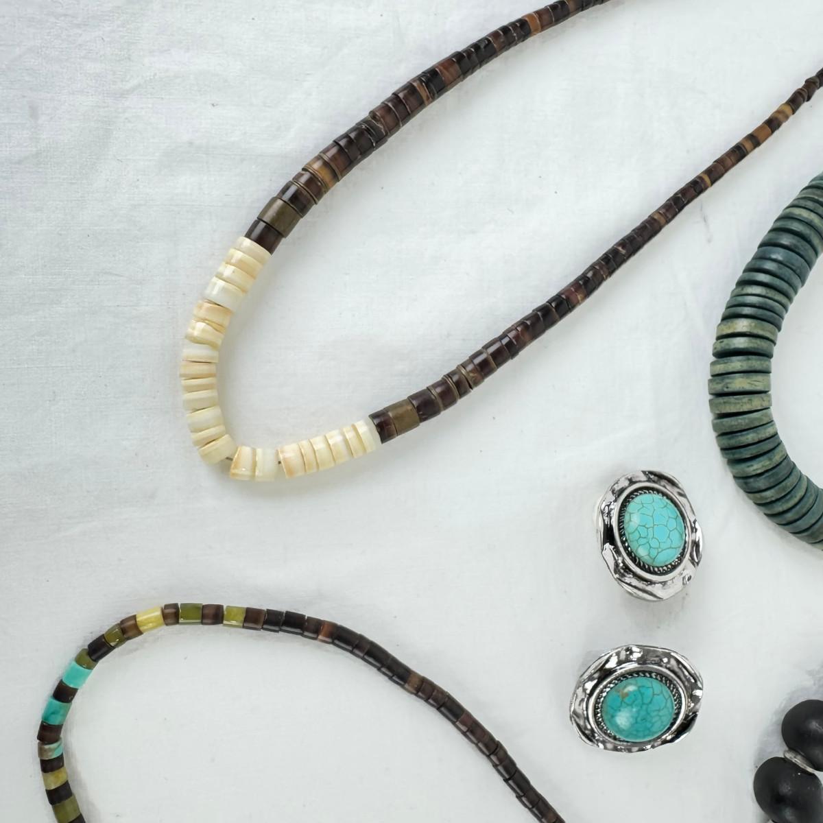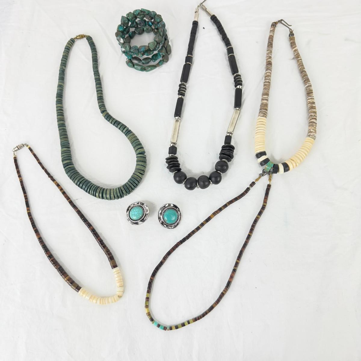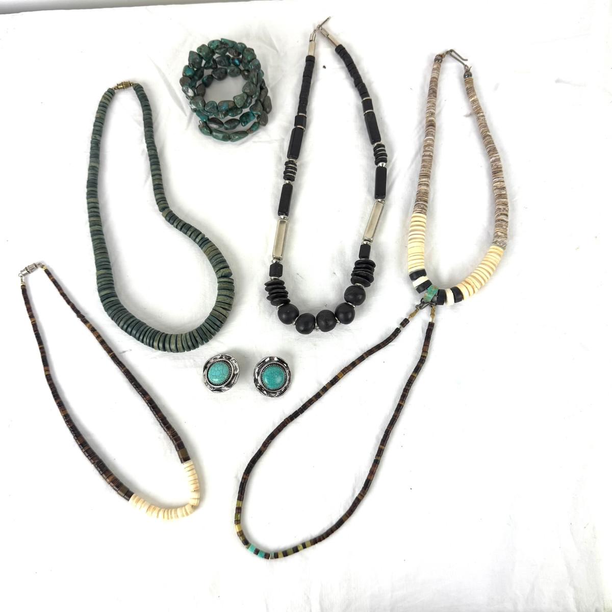 1250 Bone/Stone/Shell Necklaces With Wrap Turquoise Bracelet & Clip Earrings