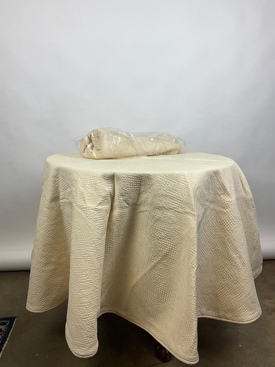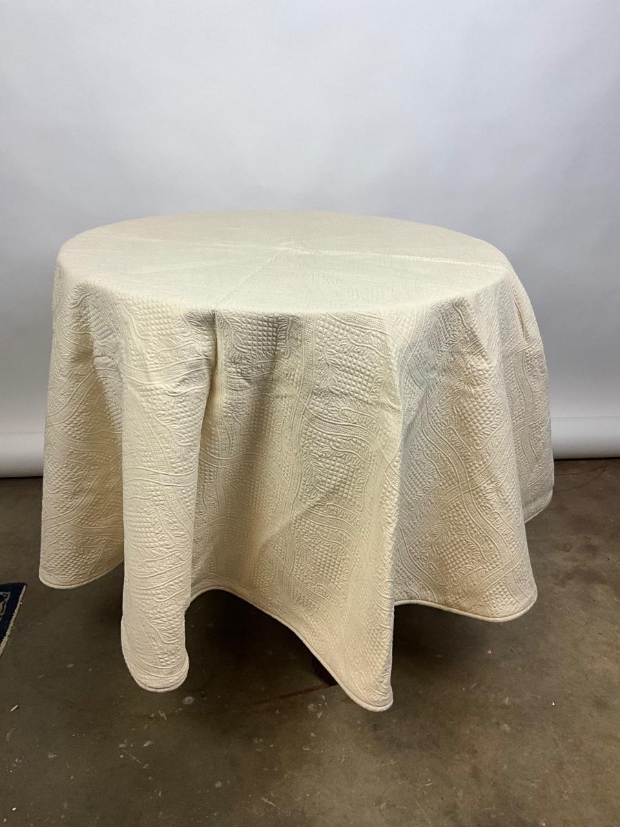 1253 Custom Made Round 6' Tablecloth with Extra Fabric in Matelasse Style