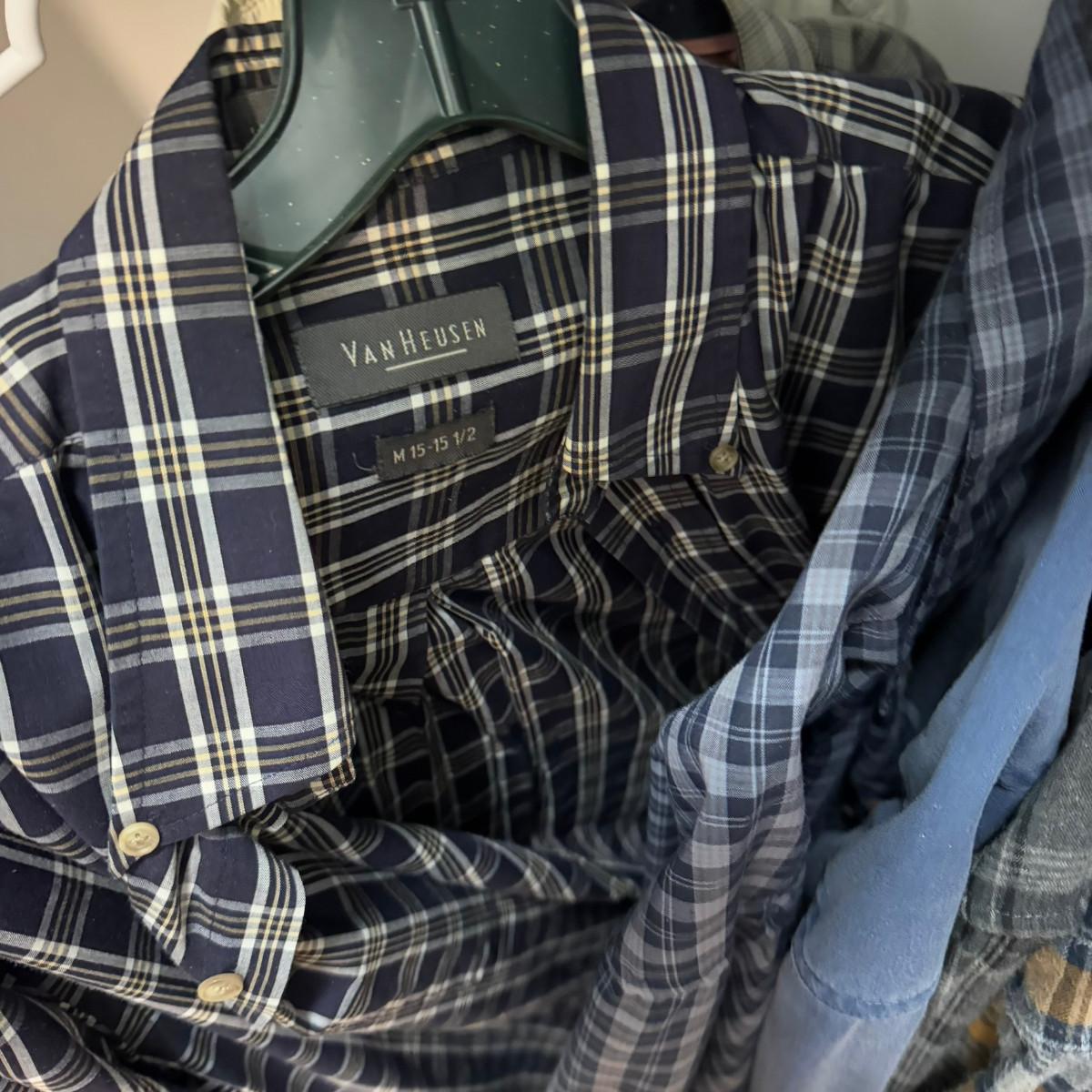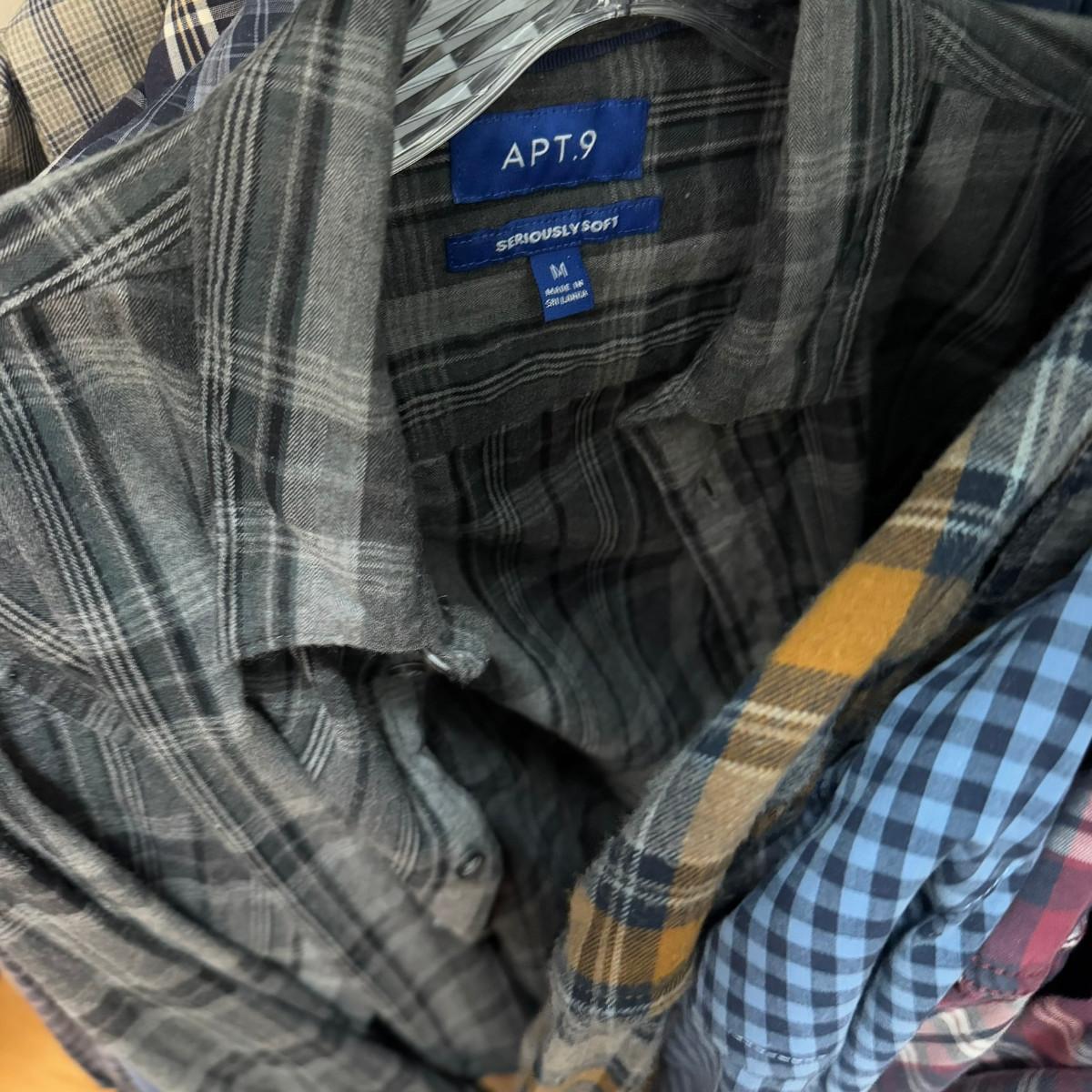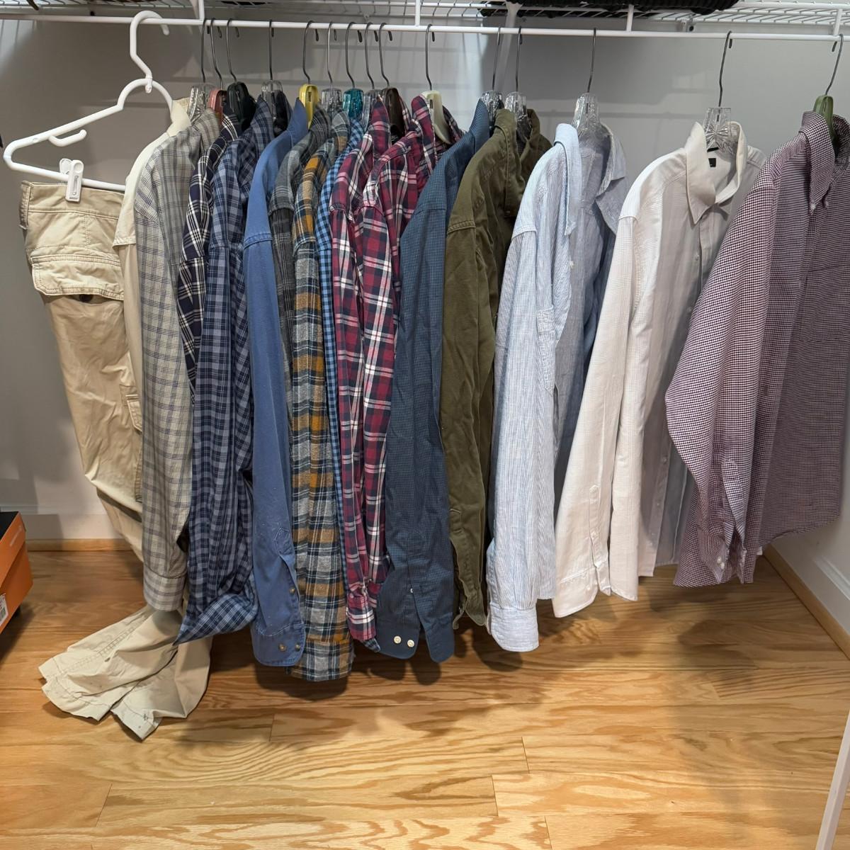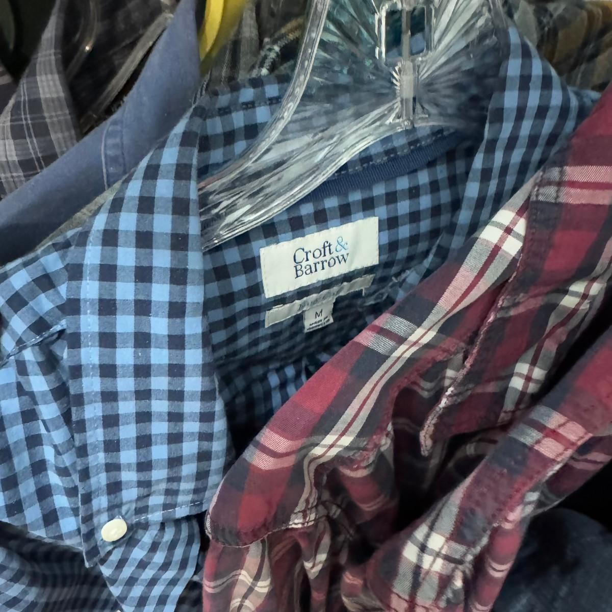 1253 Lot of Men's Plaid Casual Large/Small Shirts With Two Pairs of Pants