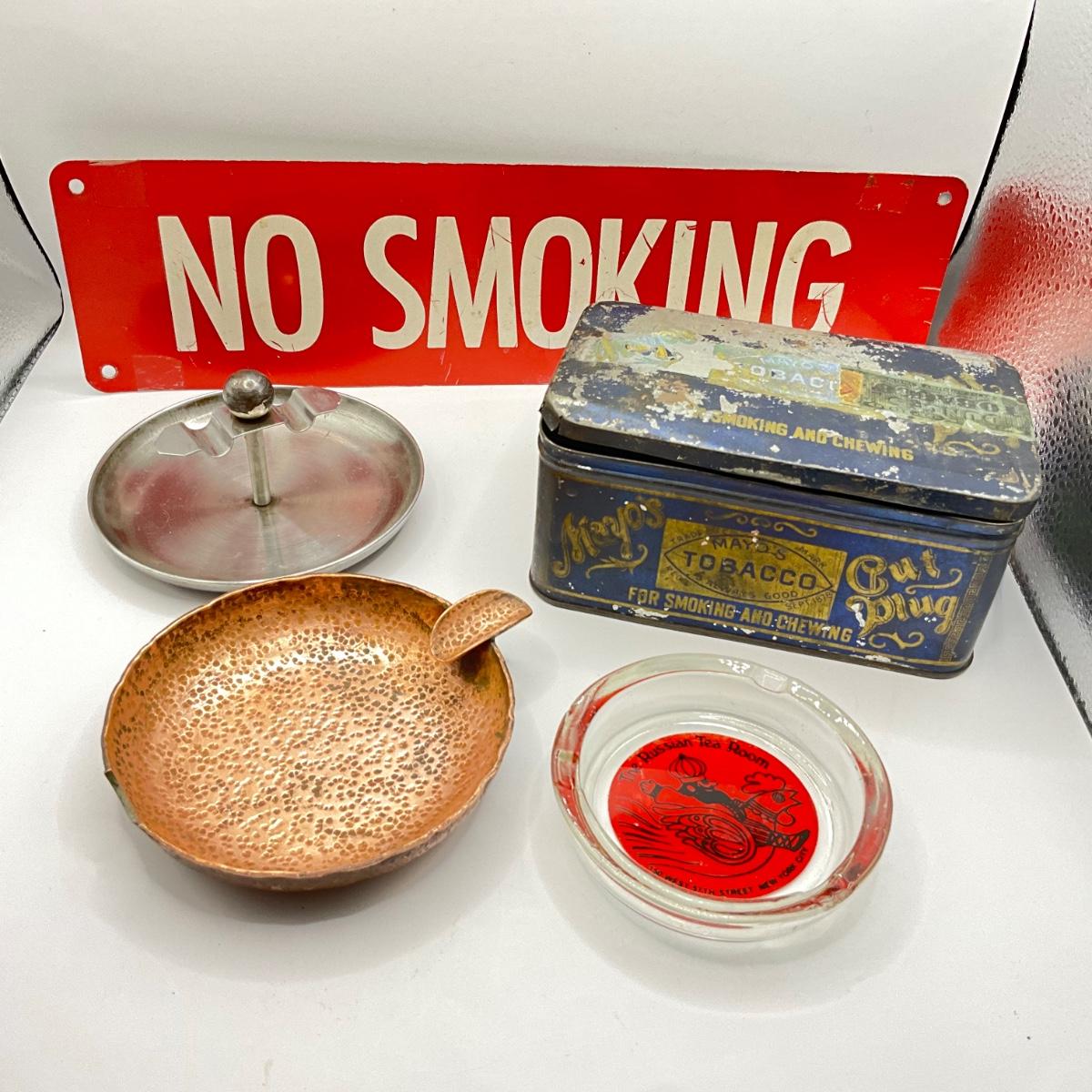 1254 Vintage Smoking Lot , Copper Ashtray, Russian Tea Room , Tobacco Tin and more