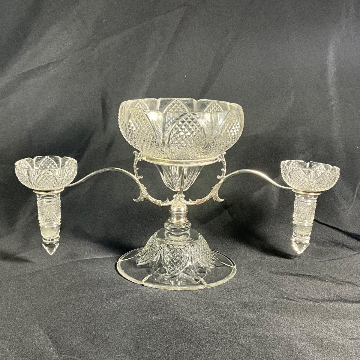 1255 Antique Silverplated & Crystal Epergne Centerpiece