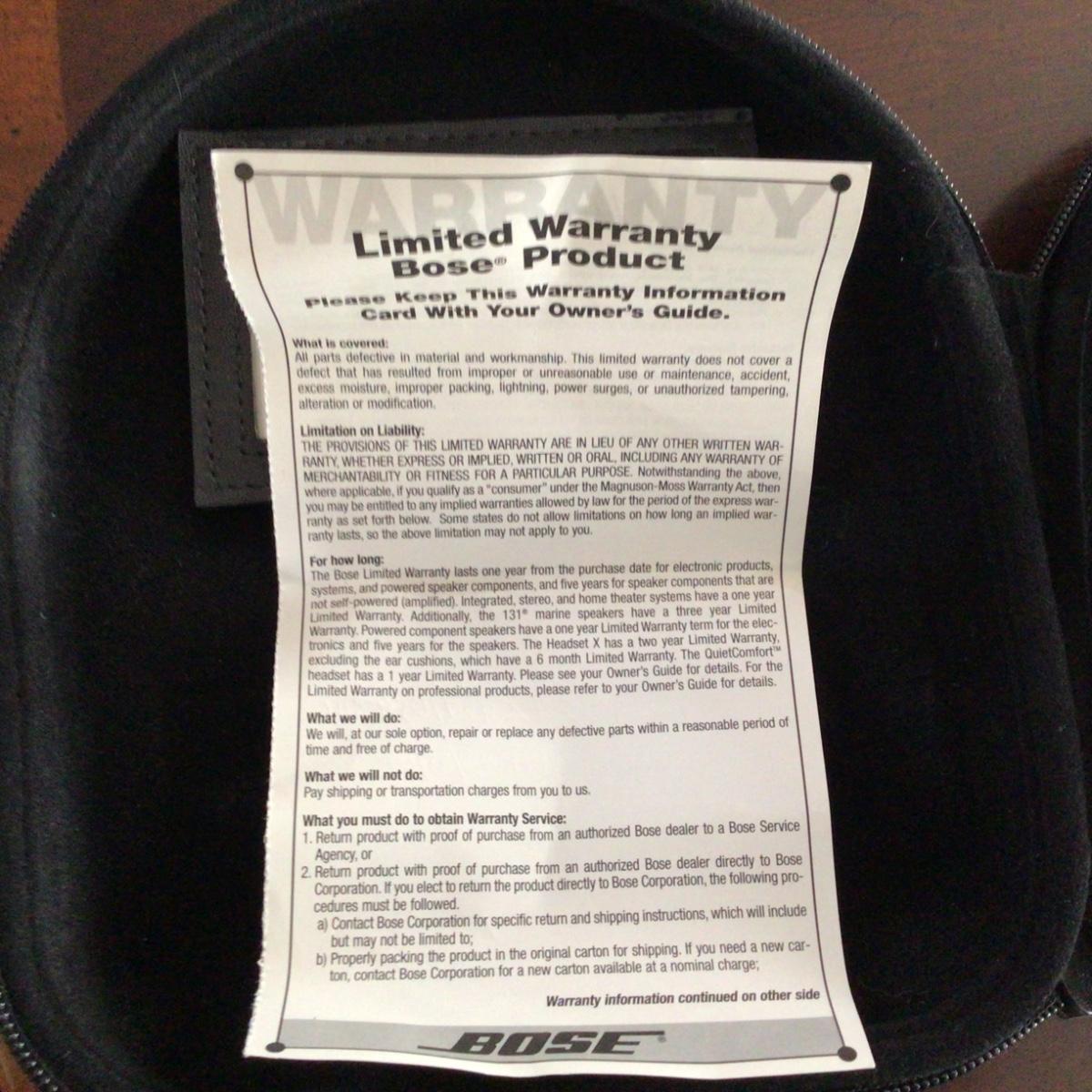 Noise cancelling headphones with case and warranty card.