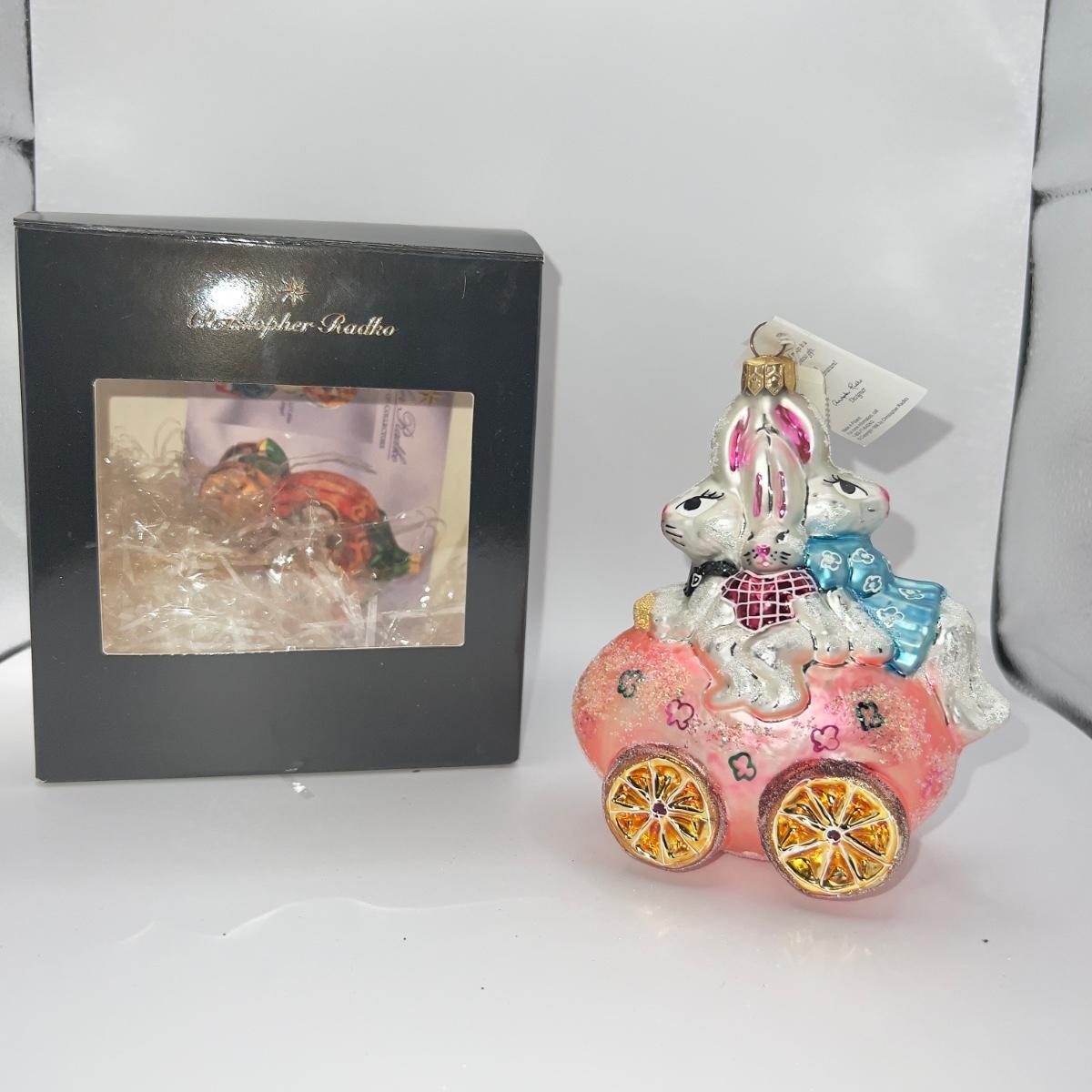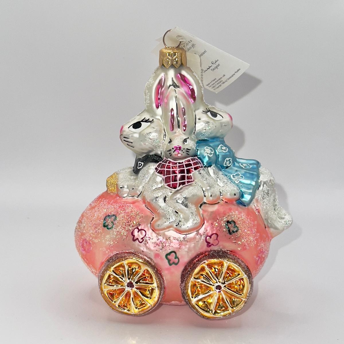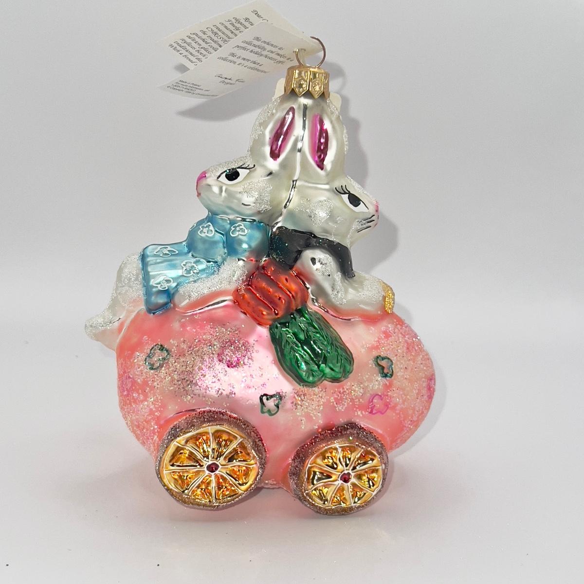 1255 Christopher Radko 1997 Bunmobile Bunny Glass Ornament