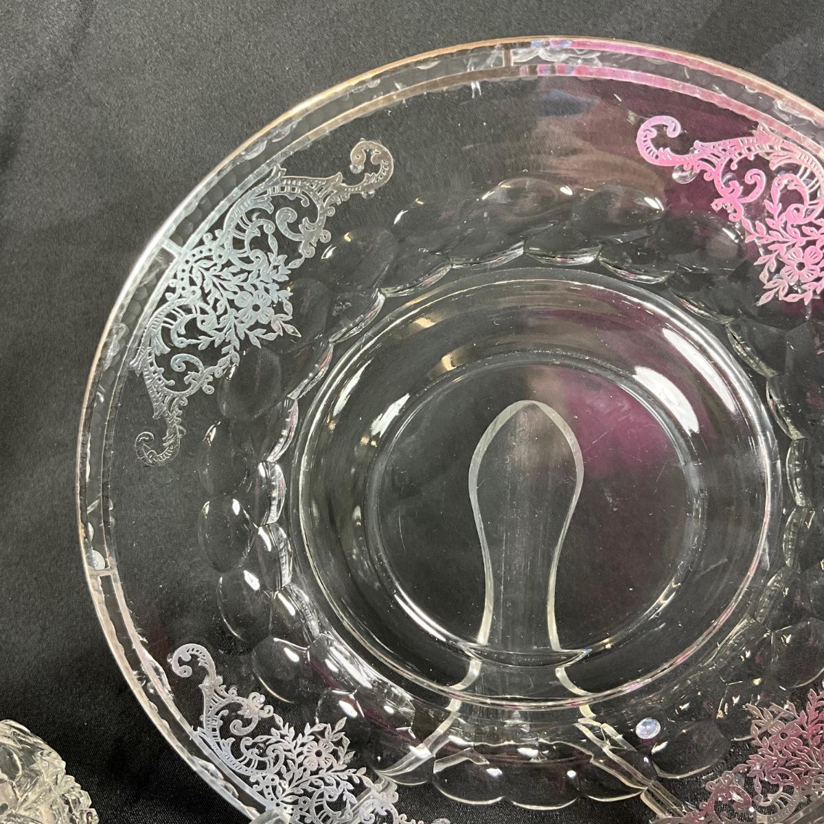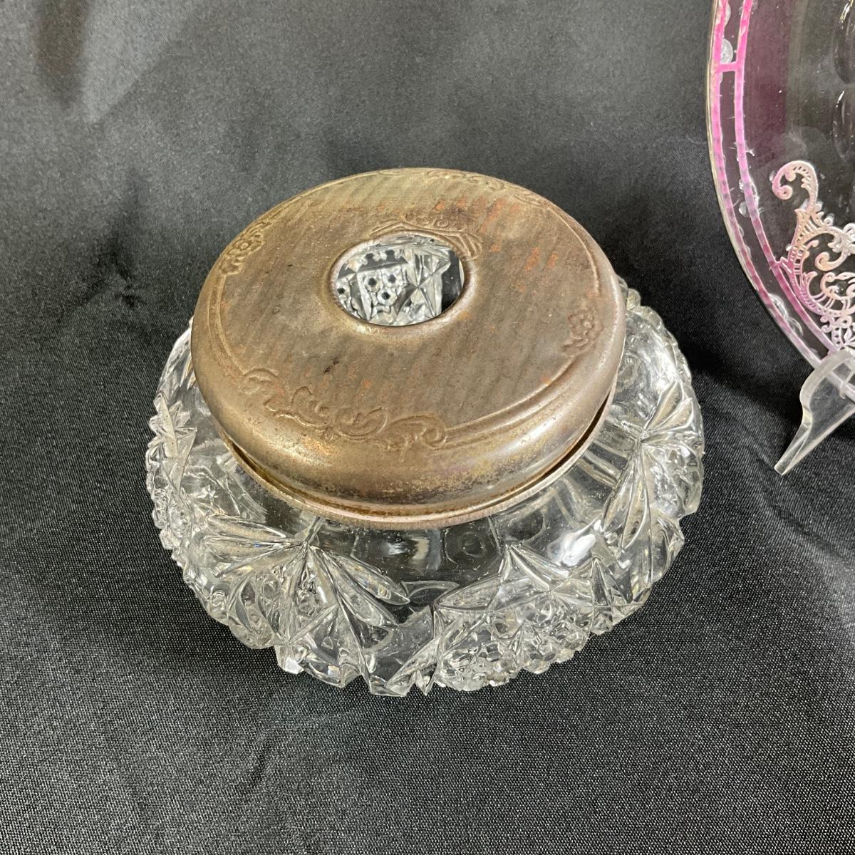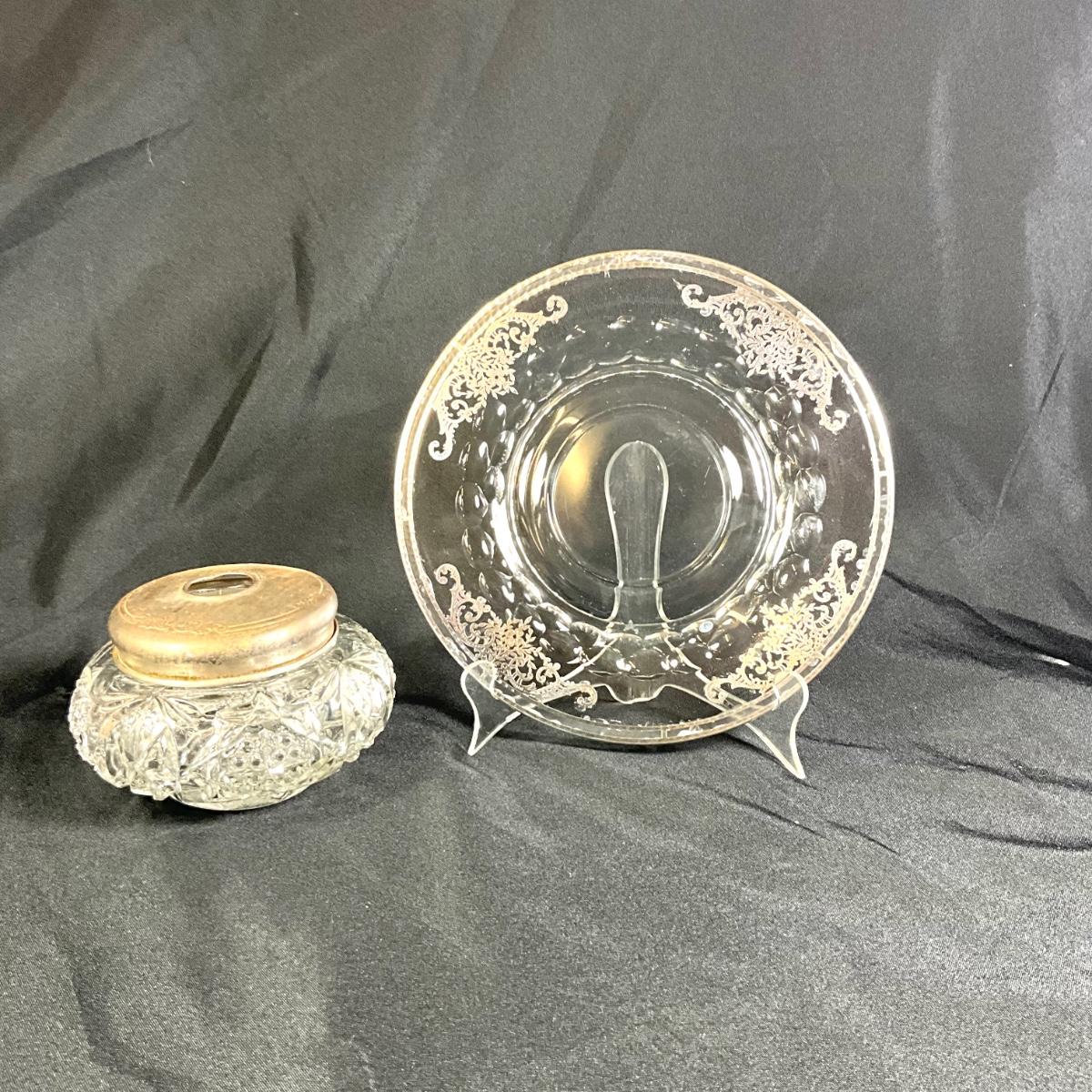1256 Vintage Silverplated Glass Plate with Glass Hair Receiver