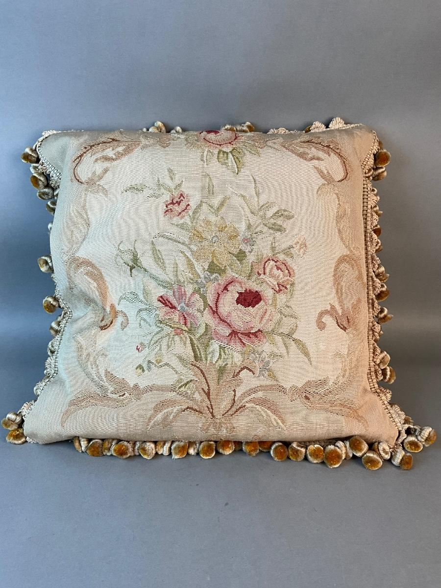1256 Vintage French Aubusson Needlepoint Down Pillow