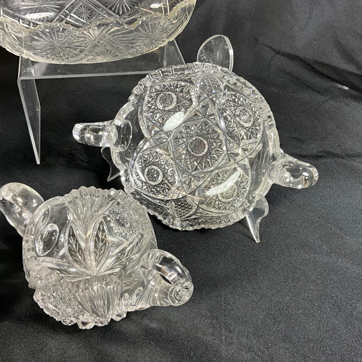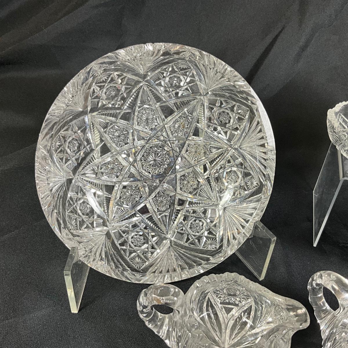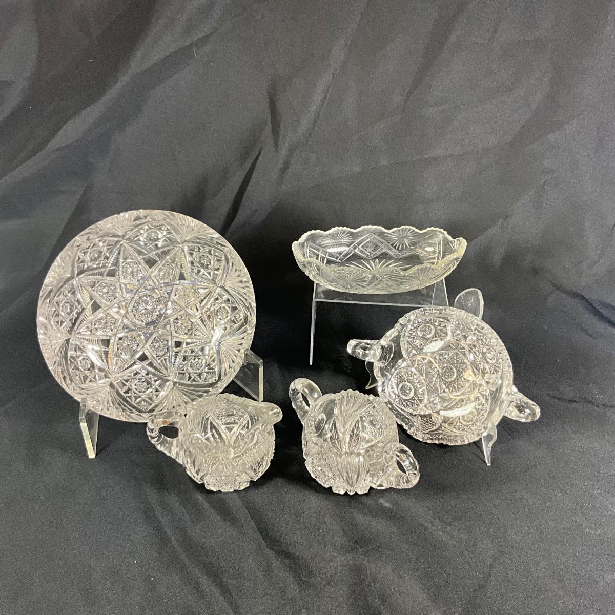 1258 Antique American Brilliant Cut Glass Bowls, Nappy, Cream & Sugar