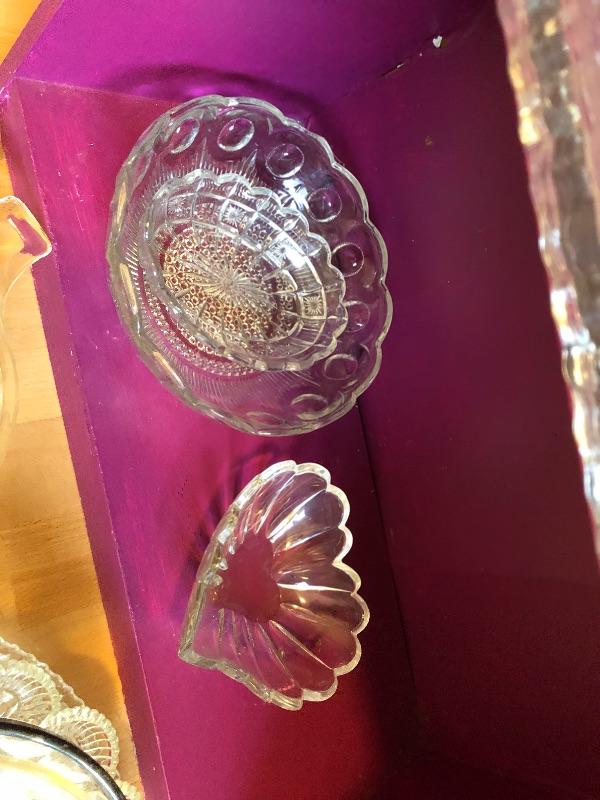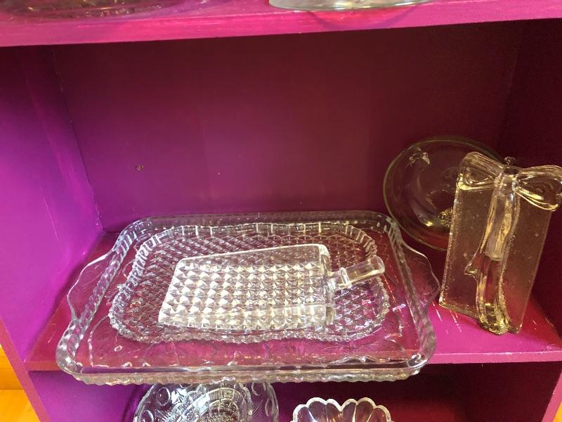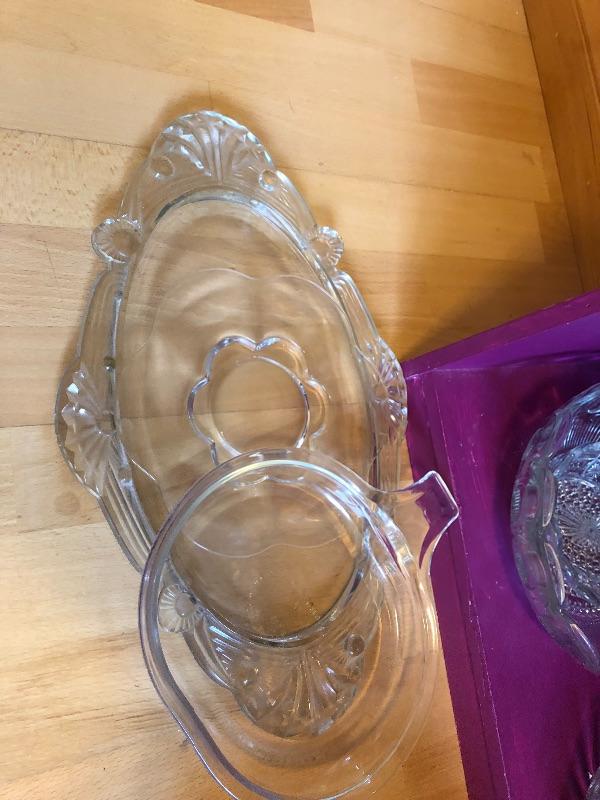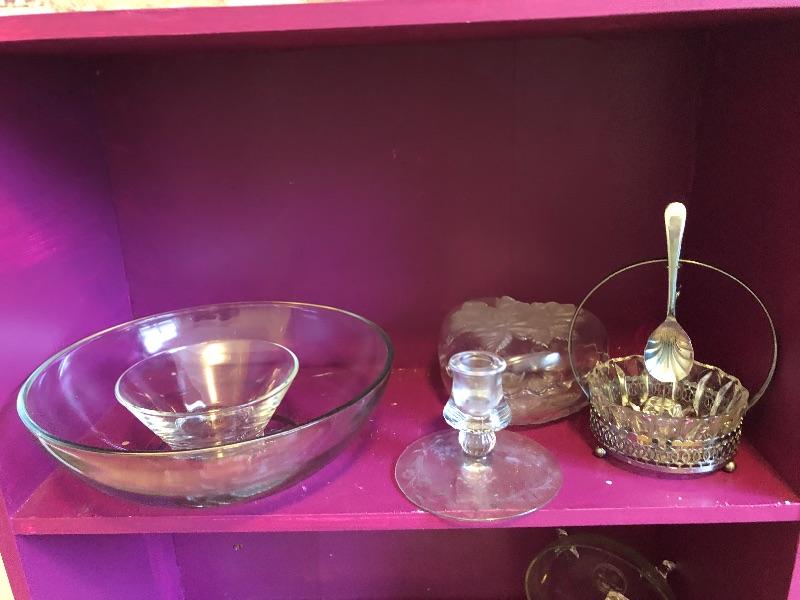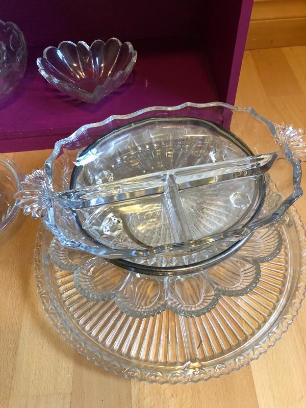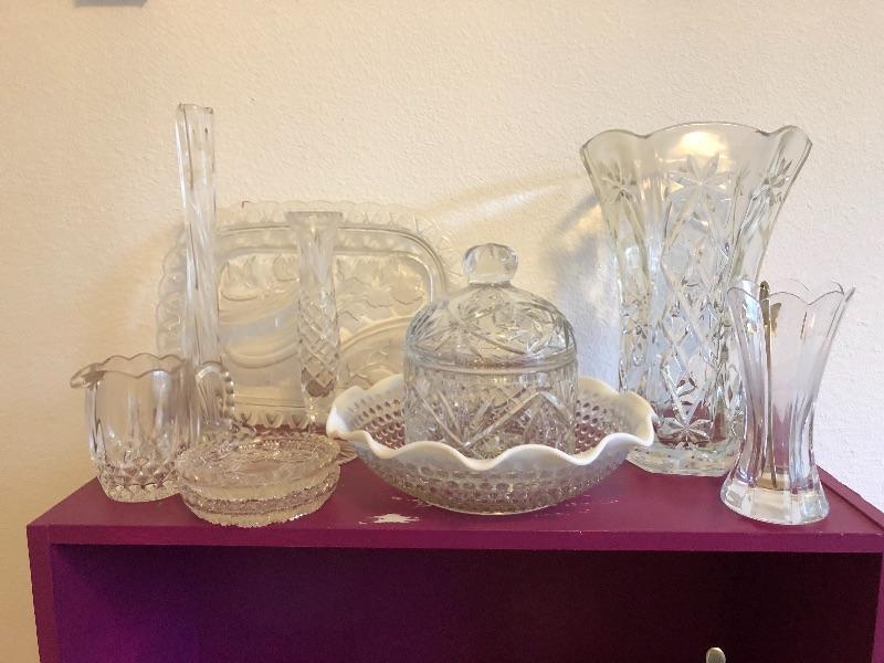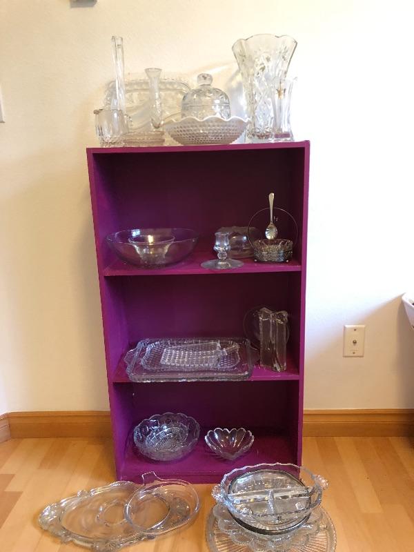 There are some really nice pieces in this lot. Hob nob class and some genuine cut crystal too. I included the shelf as well.
