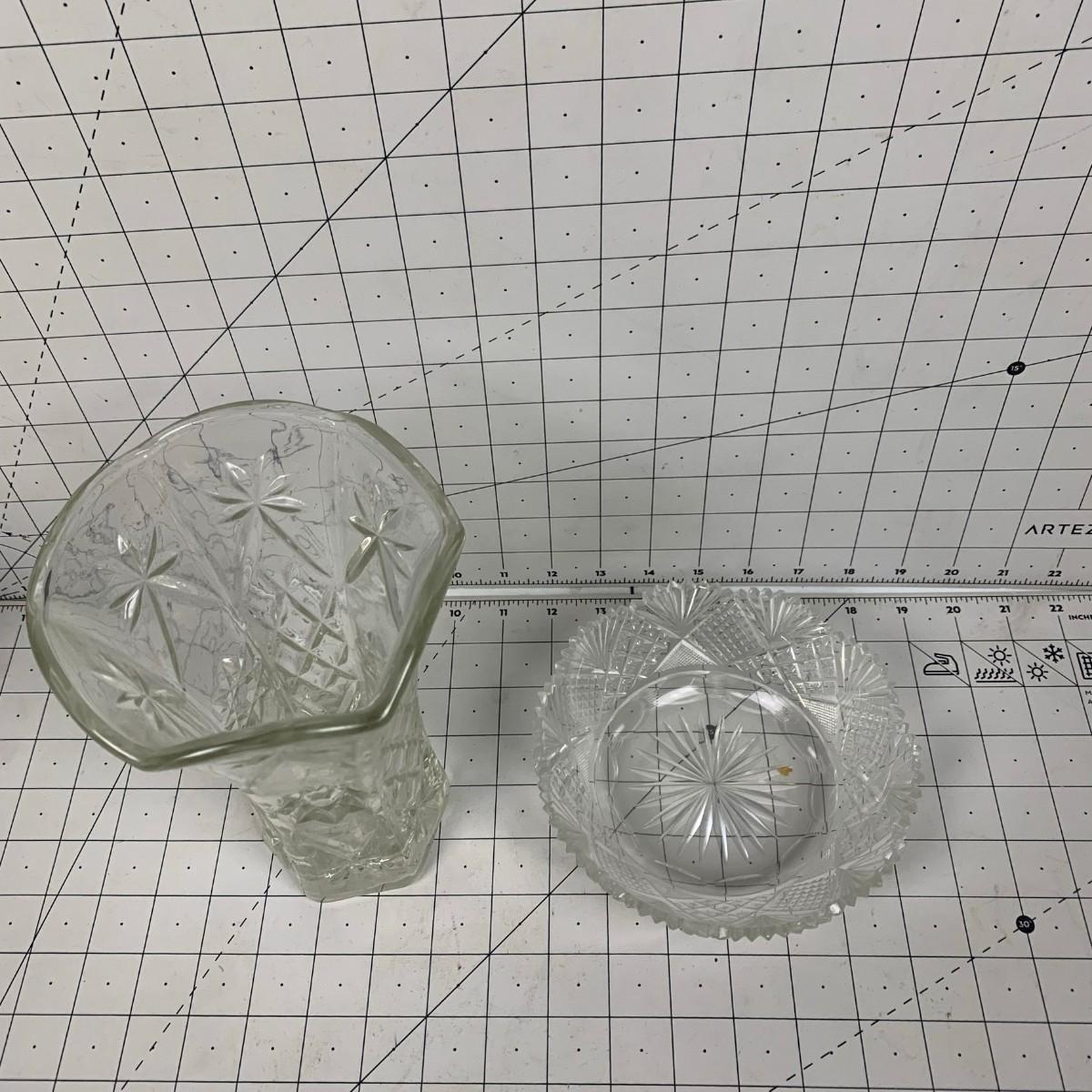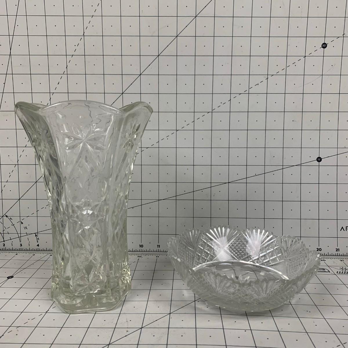 #126 Beautiful Glass Crystal Vase & Bowl