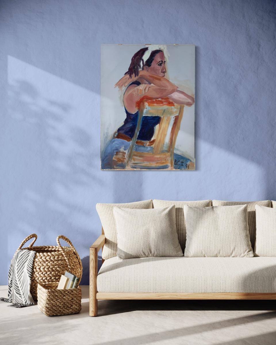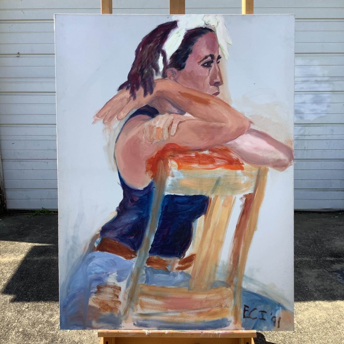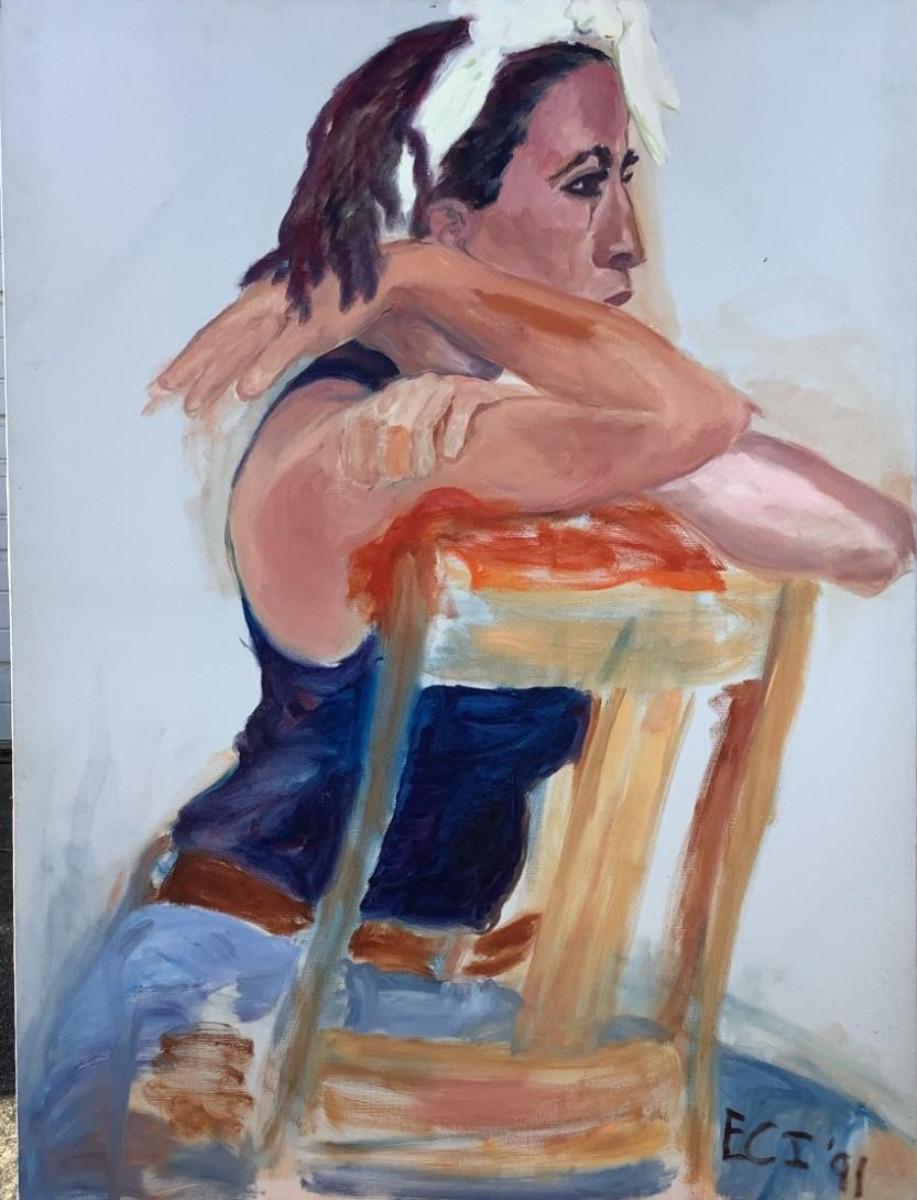 126 "Chelsea" Girl Sitting Backwards on Chair 1991 Oil on Canvas by Ellen Into
