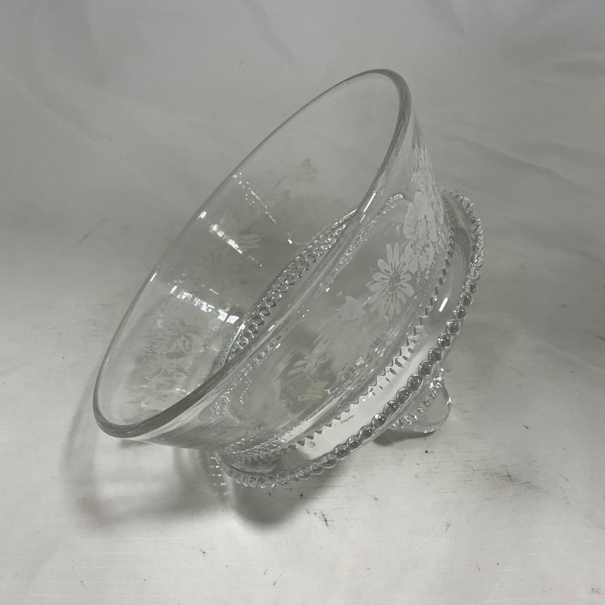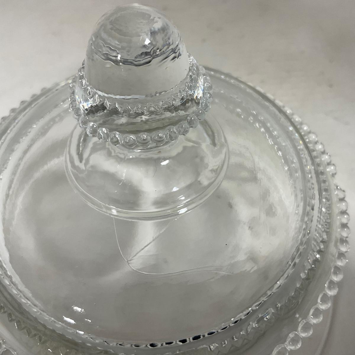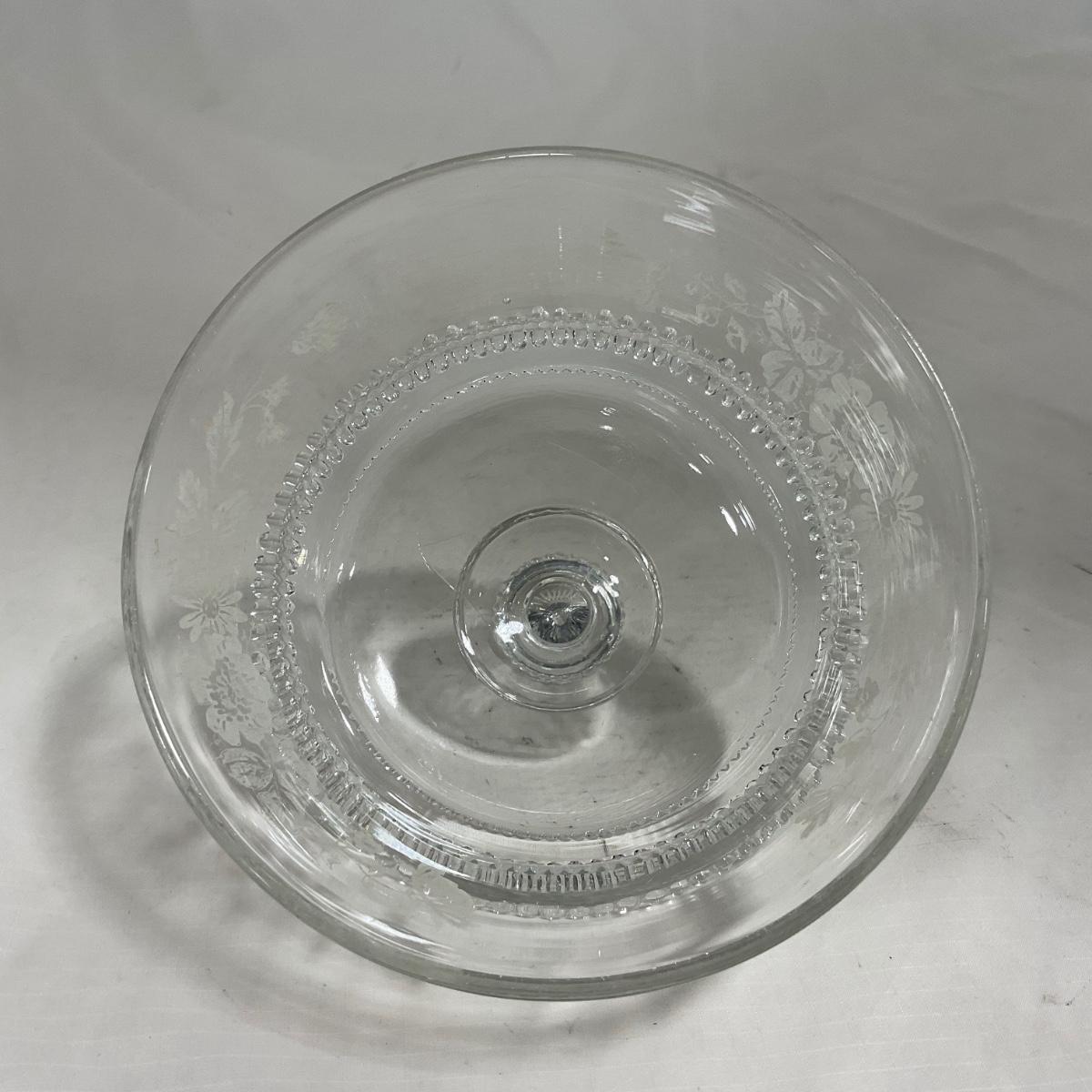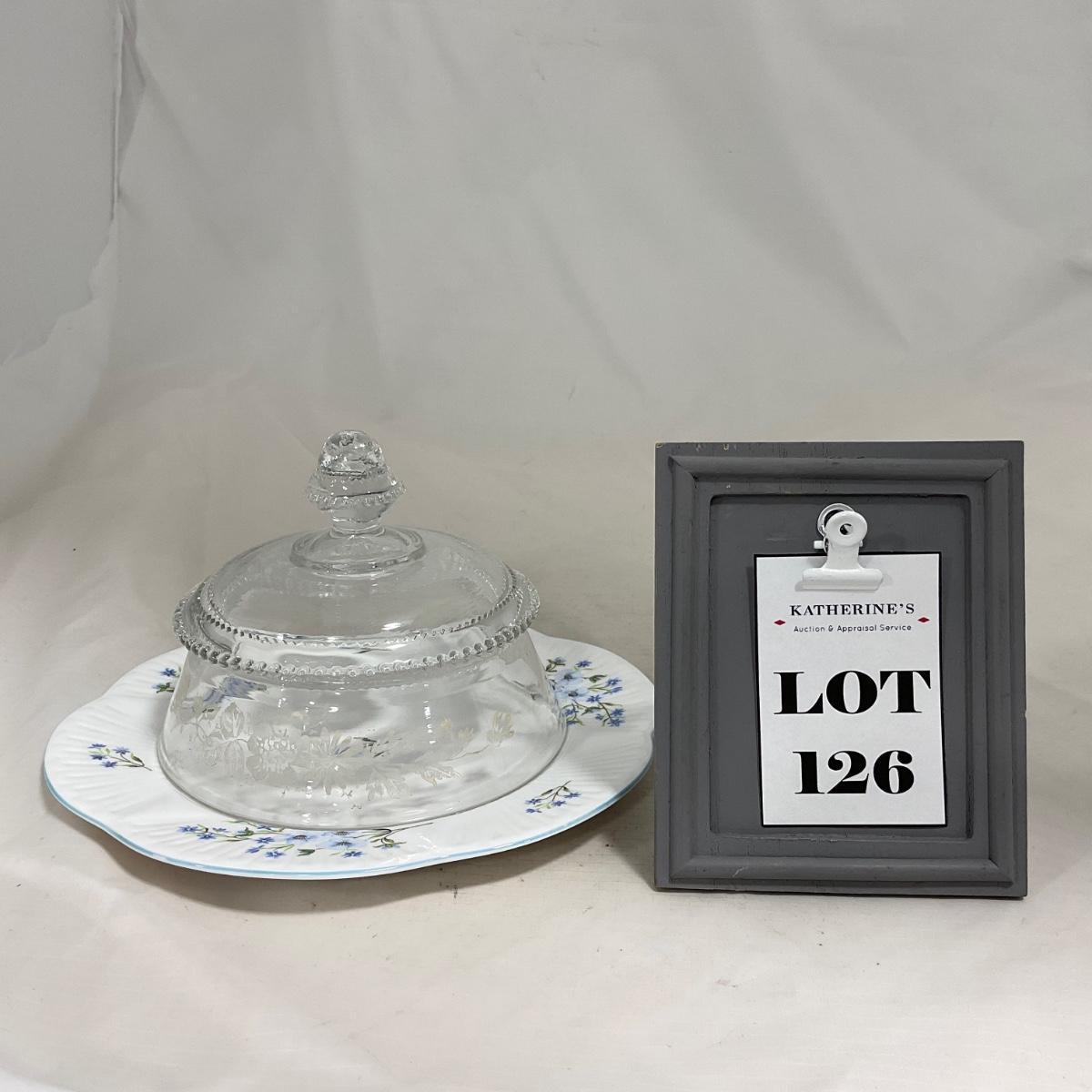 -126- Clear Glass & Floral | Marked | Covered Butter Dish