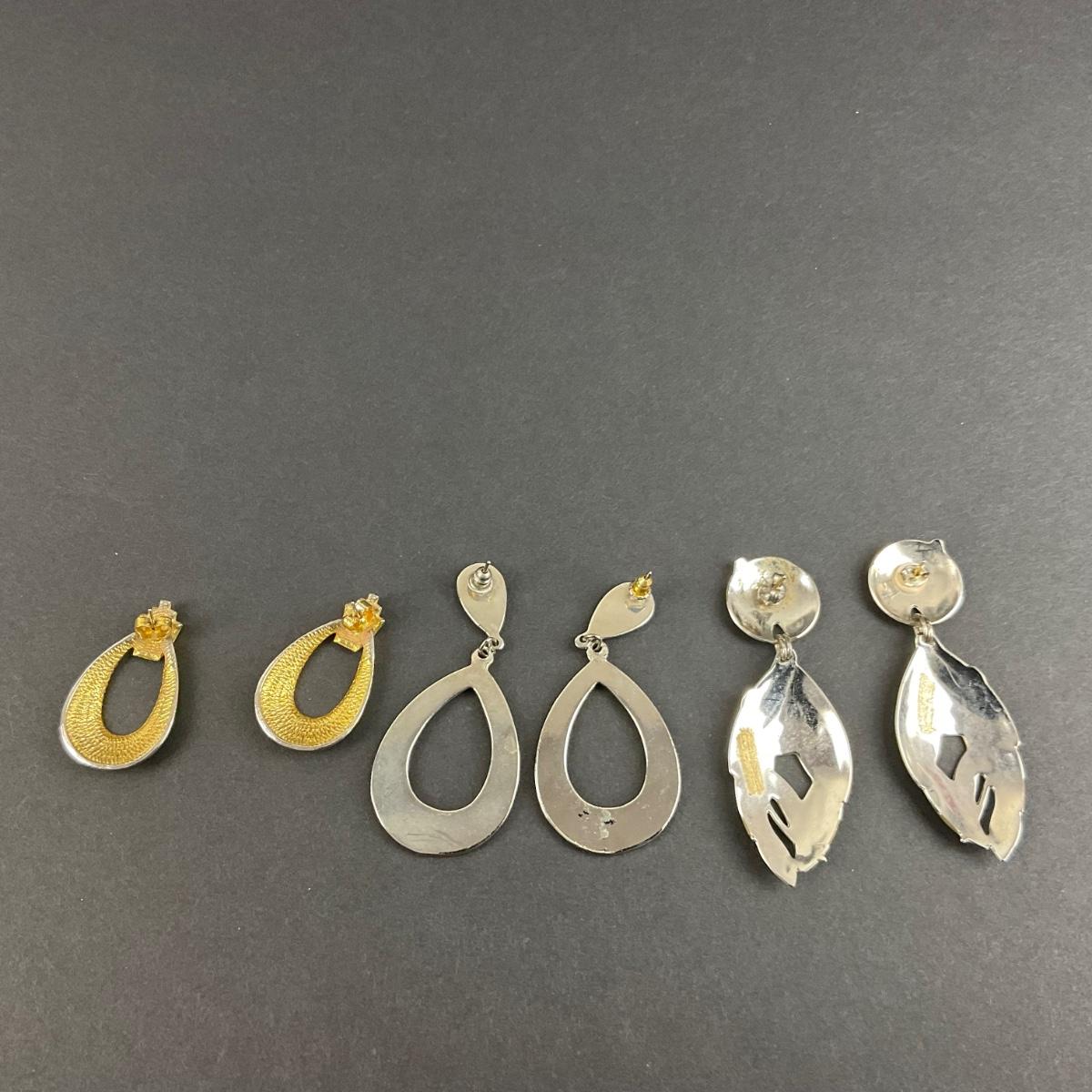 Three pairs of assorted enameled earrings. Please see photos for details and condition. Any condition statement is given as a courtesy to a client, is an opinion, and should not be treated as a statement of fact. Reference to condition written, oral or within a condition report shall not be regarded as a full account of condition and may not include all defects, alterations, or restorations. Absence of a condition report does not imply a lot is flawless or lacking imperfections or damage. Katherine’s Auction & Appraisal Service shall have no responsibility for any error or omission. Returns shall not be accepted on the basis of condition. ::: Shipping is available on this lot. If you require shipping you must let us know at the close of the auction. We will coordinate with you after the item has been won. Shipping fees will include insurance up to or exceeding the value of all items being mailed. If you have any questions regarding this lot please contact the auctioneer either via this website, by direct email or by phone. PICK UP TIMES and other important information can be found in the TERMS and DESCRIPTION of the auction. Please take a look for pertinent information. Thanks!