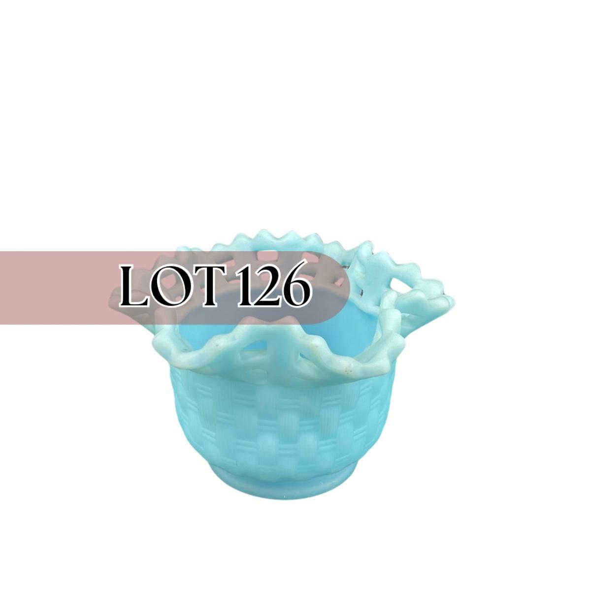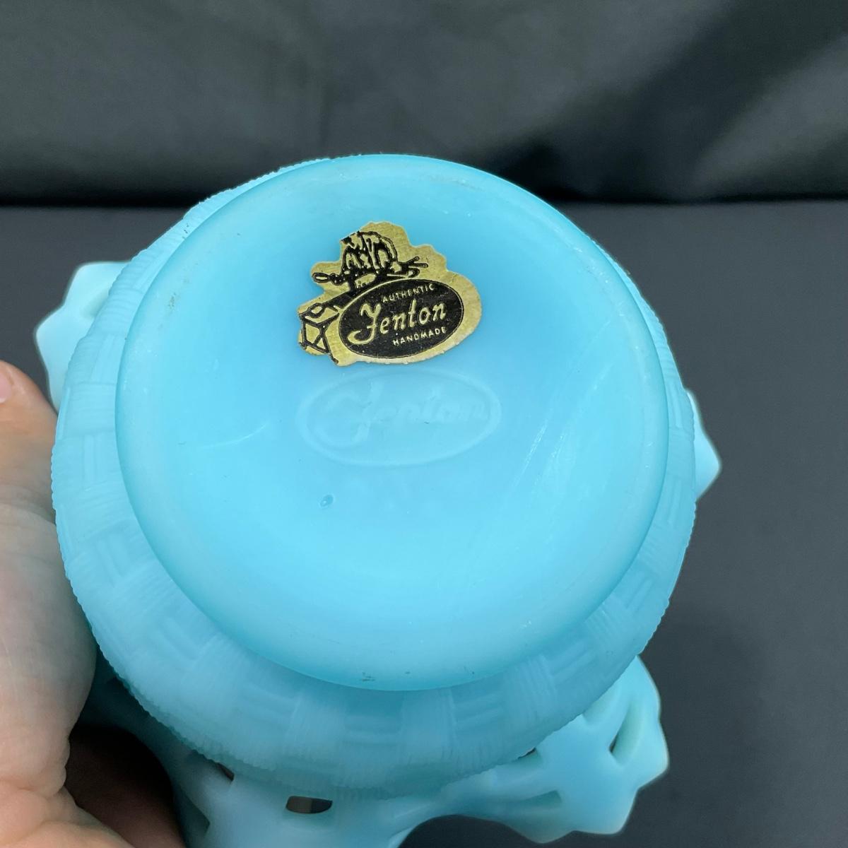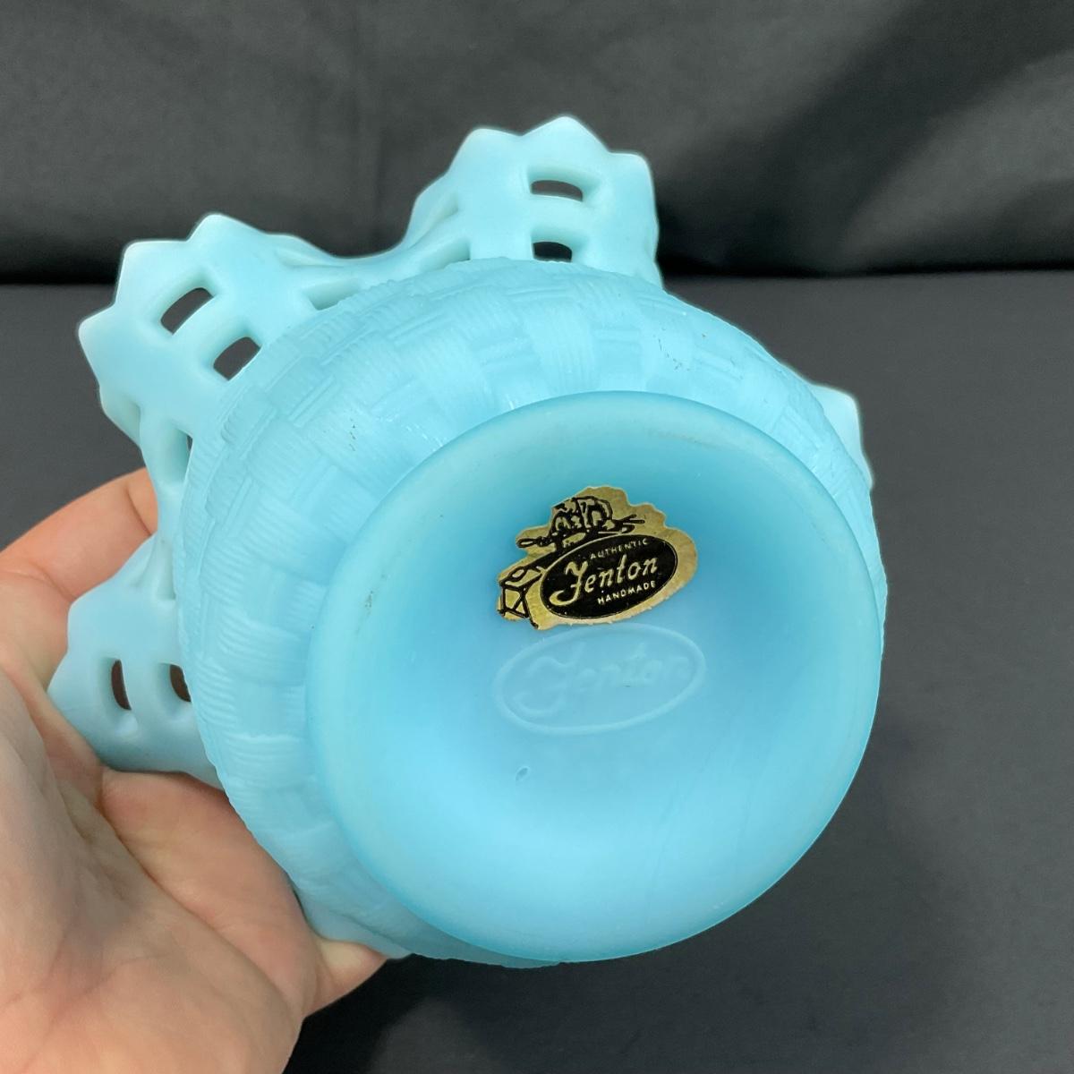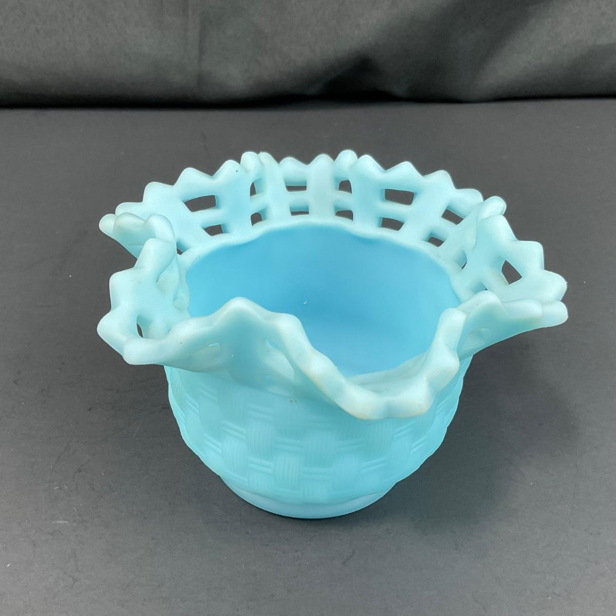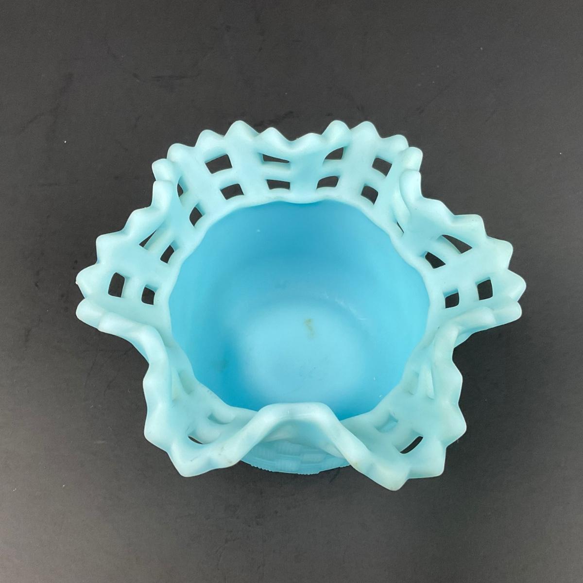 -126- FENTON | Satin Blue Basketweave Small Vase | Marked