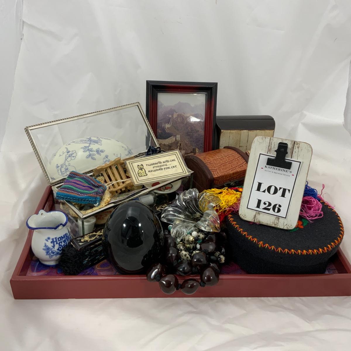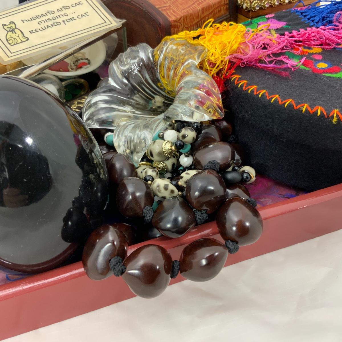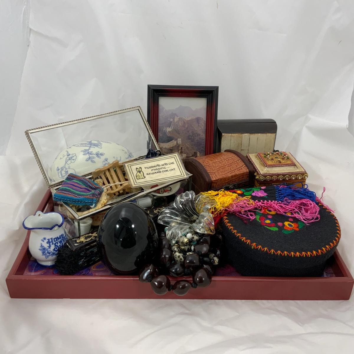 From the Estate of Peter and Alice Radovanovich: A nice tray filled with all sorts of small things, a couple wooden nickels, small display boxes, A picture of the Great Wall of China, magnets, worry dolls“🦆Look through the photos and see what you can see! Please see photos for details and condition. ::: Shipping is NOT available on this lot. If you have any questions regarding this lot please contact the auctioneer either via this website, by direct email or by phone. PICK UP TIMES and other important information can be found in the TERMS and DESCRIPTION of the auction. Please take a look for pertinent information. Thanks!