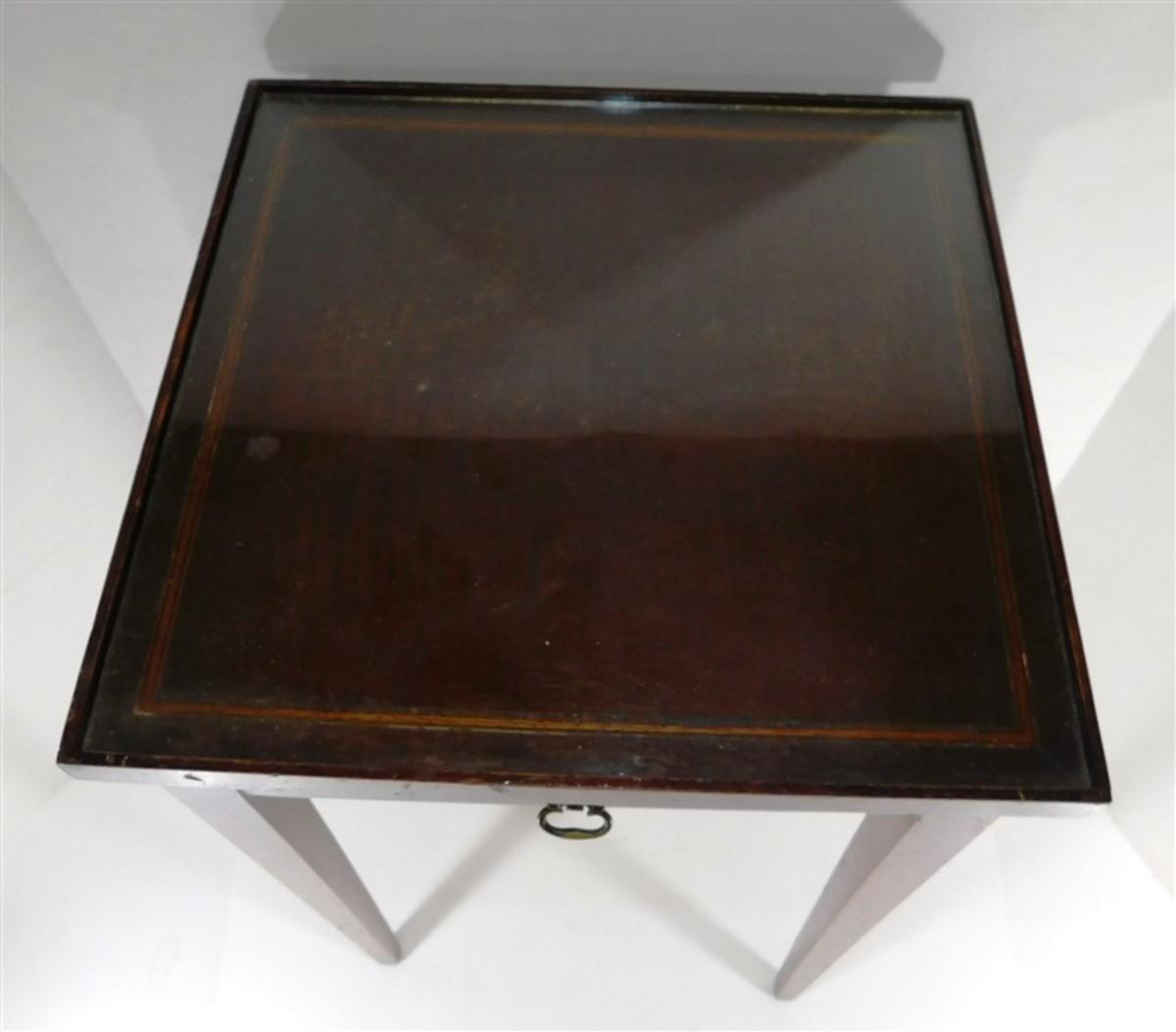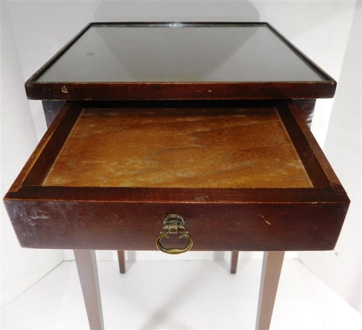 126 Small Wooden Table with Little Drawer with Glass on Top 24 x 11 1/2