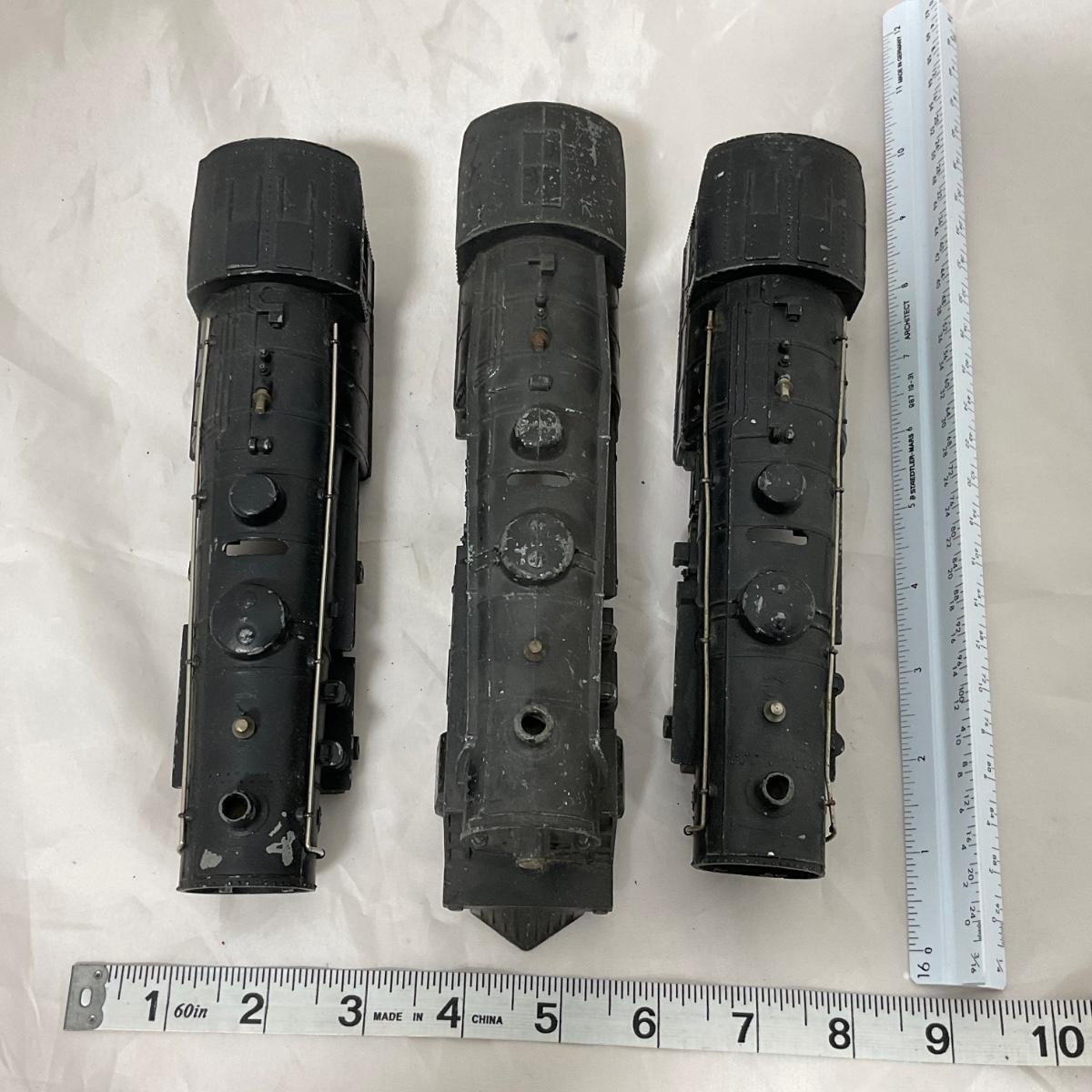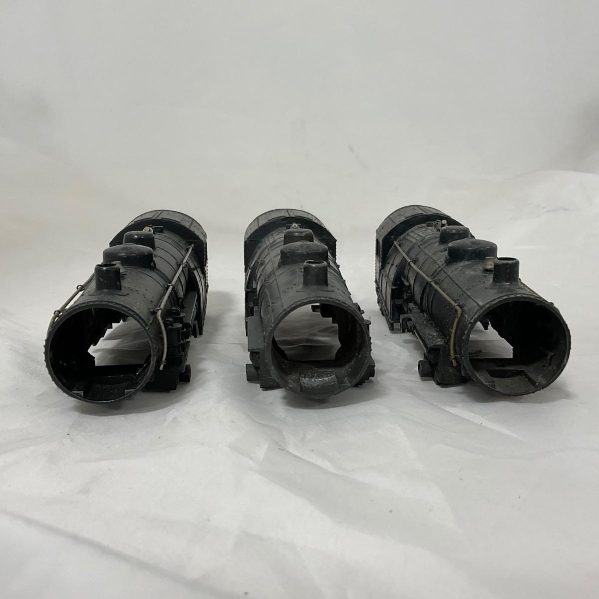 Six Steam locomotive metal shells. In worn used condition. Please see photos for details and condition. ::: Shipping is available on this lot. If you require shipping you must let us know at the close of the auction. We will coordinate with you after the item has been won. Shipping fees will include insurance up to or exceeding the value of all items being mailed. If you have any questions regarding this lot please contact the auctioneer either via this website, by direct email or by phone. PICK UP TIMES and other important information can be found in the TERMS and DESCRIPTION of the auction. Please take a look for pertinent information. Thanks!
