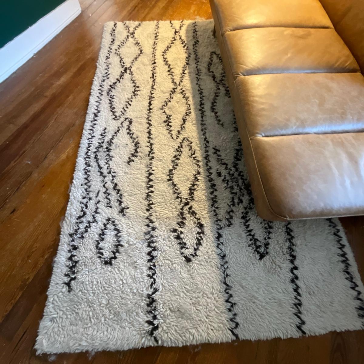 126 West Elm Black and White Joya Shag Rug 5' x 8'