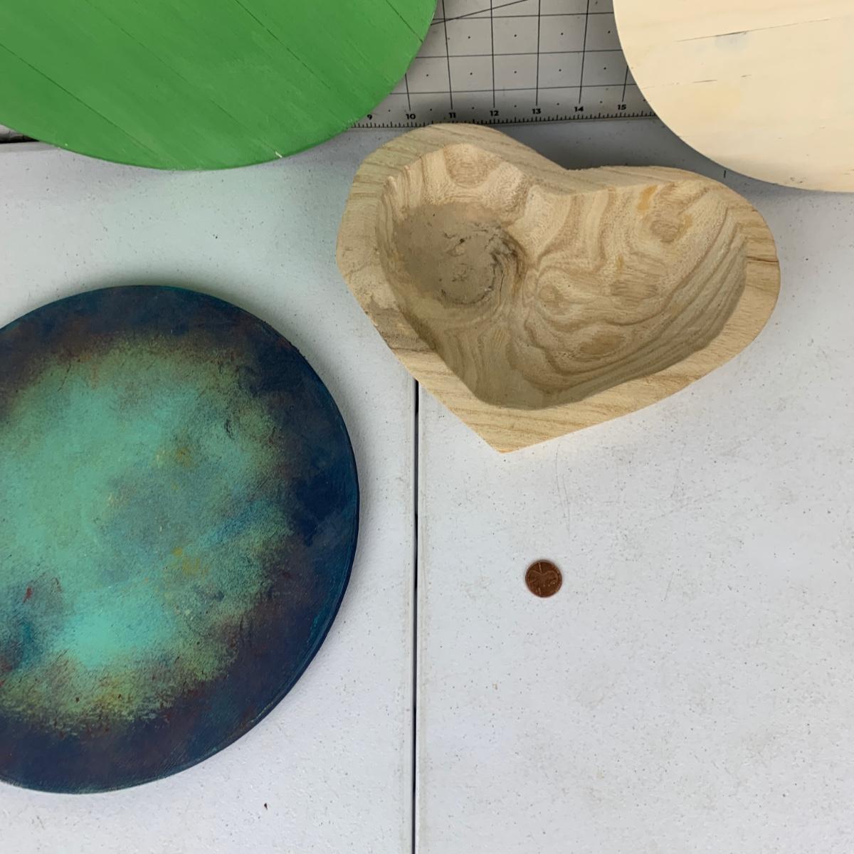#126 Wooden Heart Bowl & Wood Circles