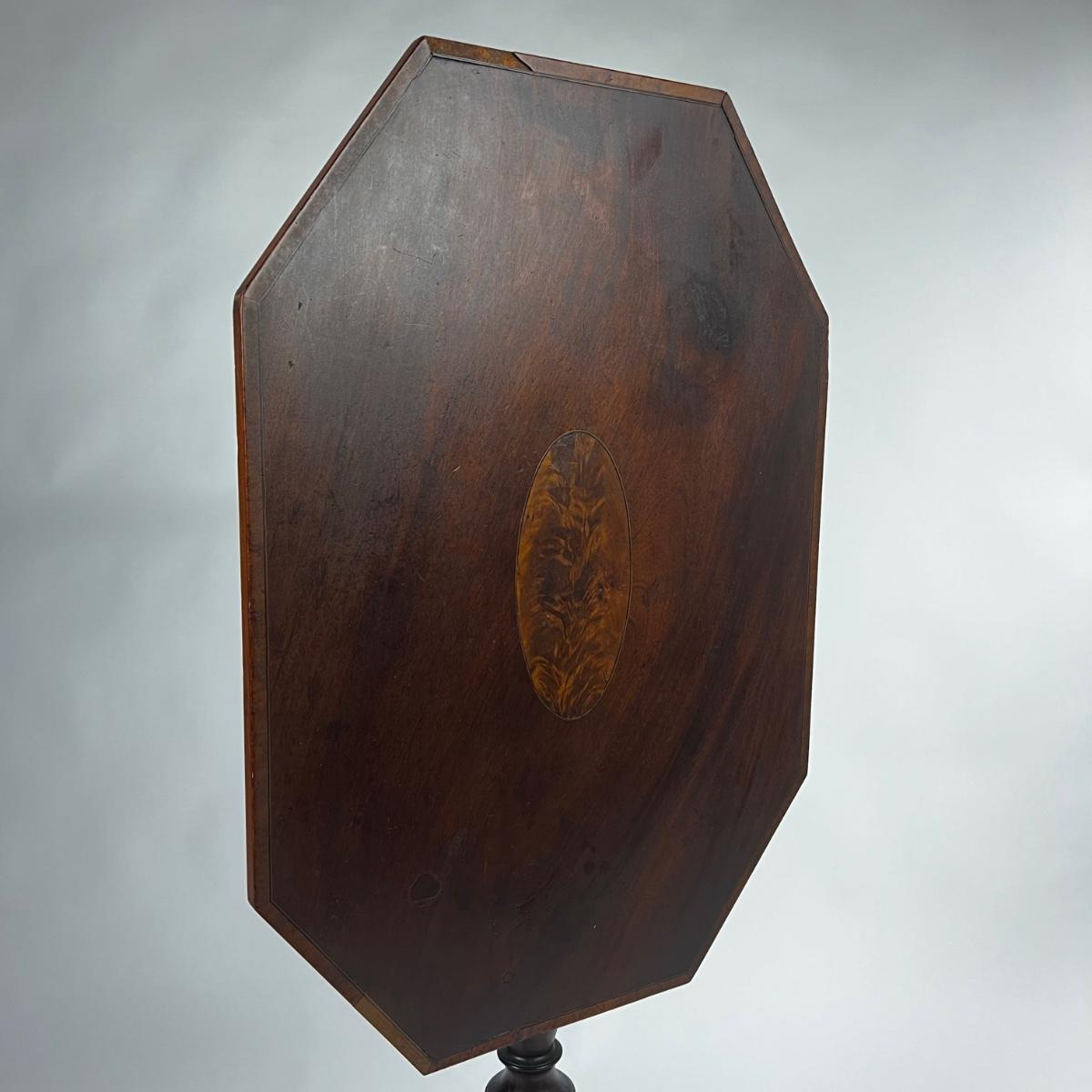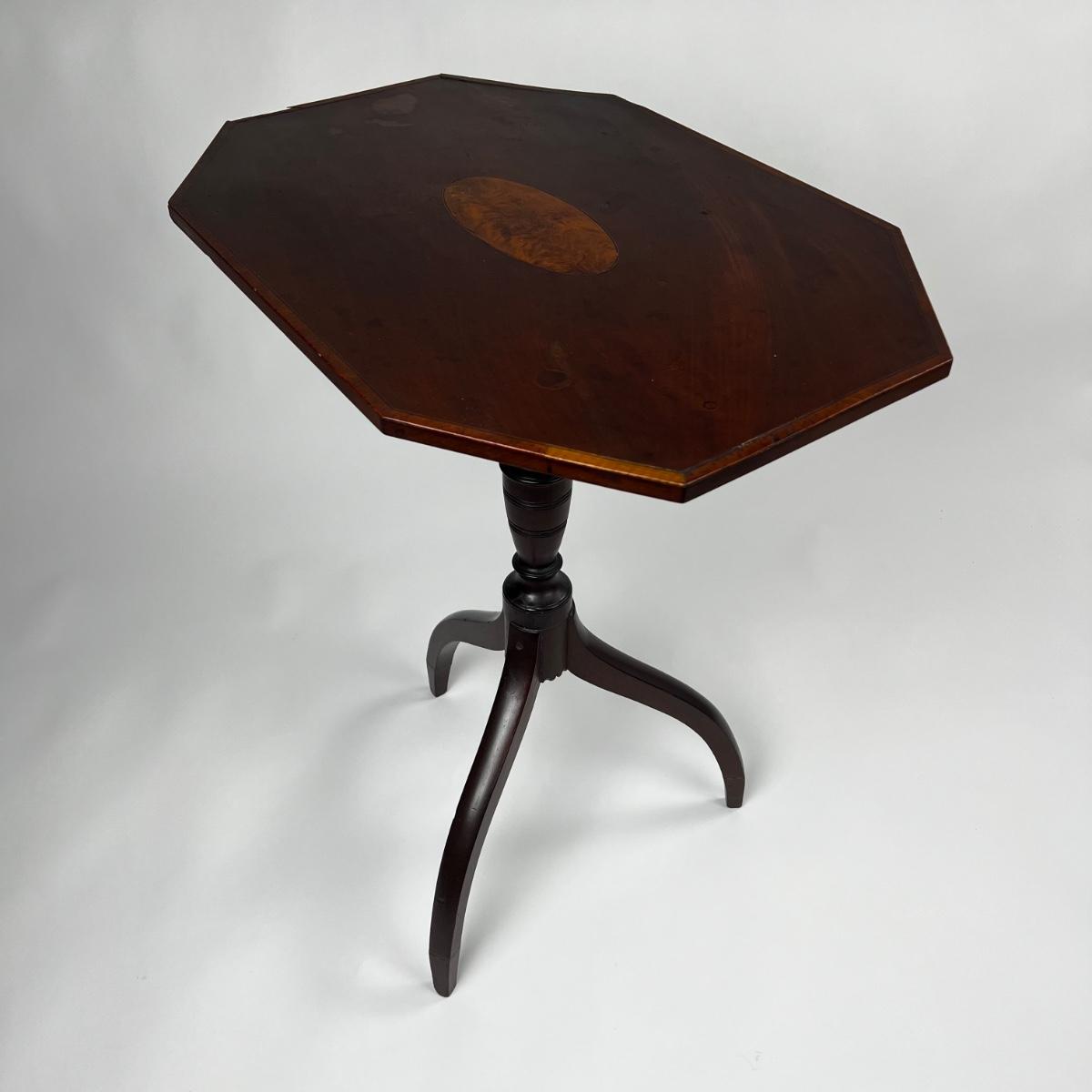 1262 Antique Mahogany Oval Inlay Tilt Top Table Candle-stand