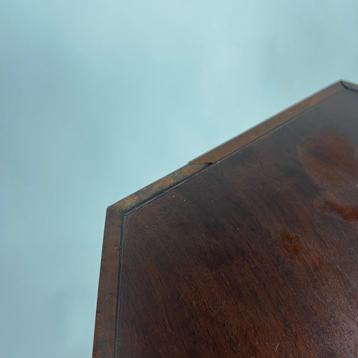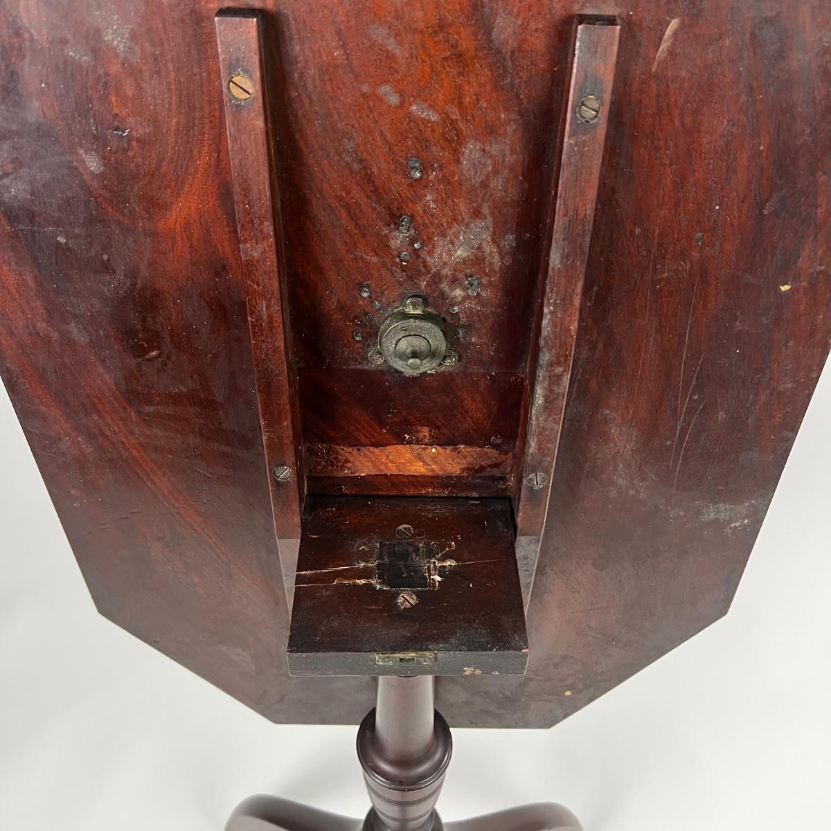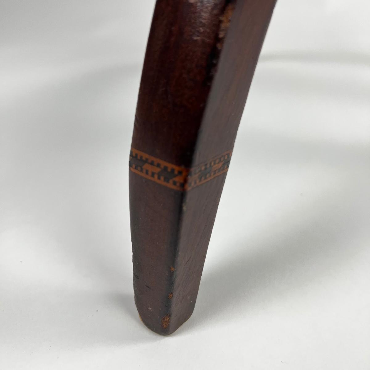 Antique Mahogany Oval Inlay Tilt Top Table Candle-stand. Tripod spider leg base. **missing a part of inlay and venire**
