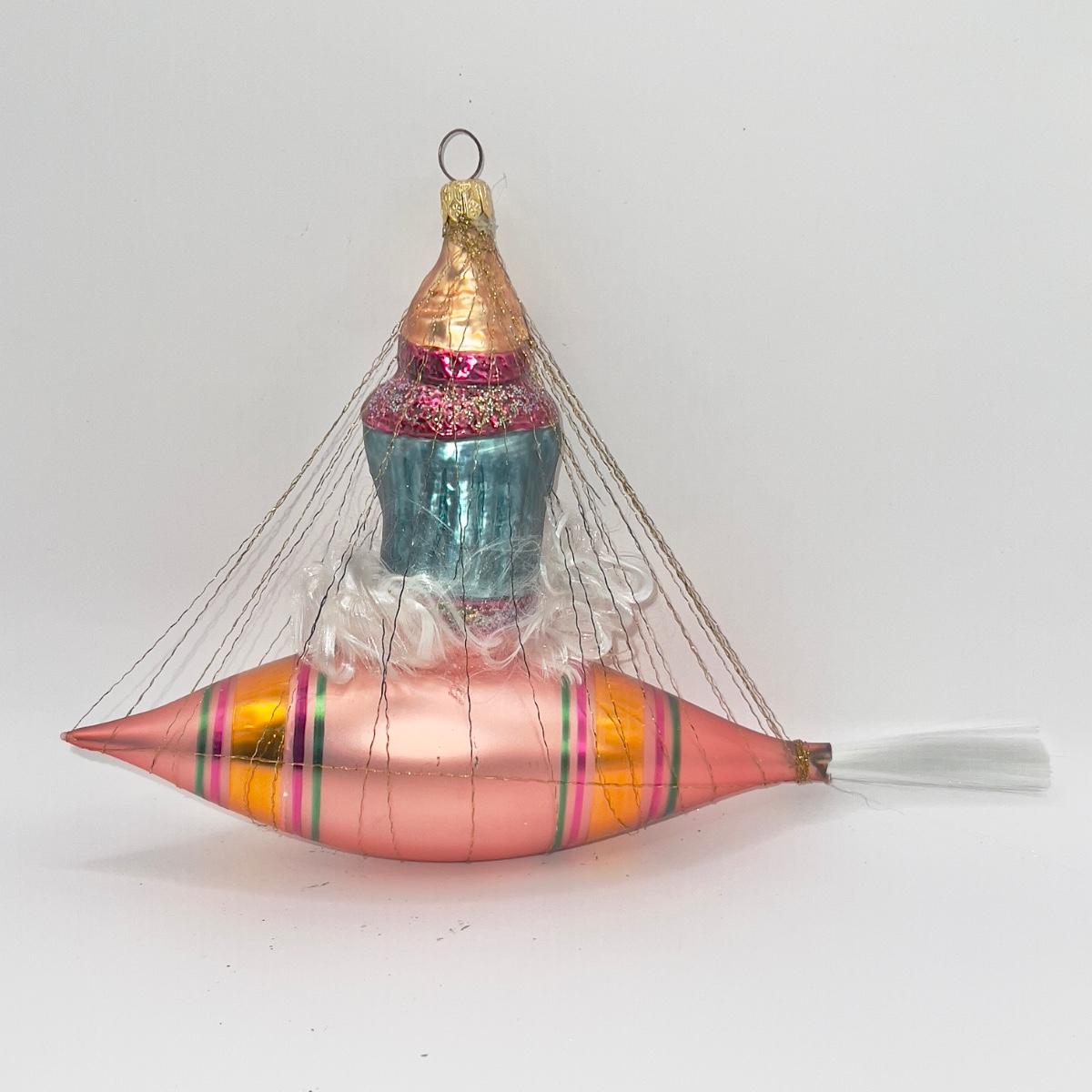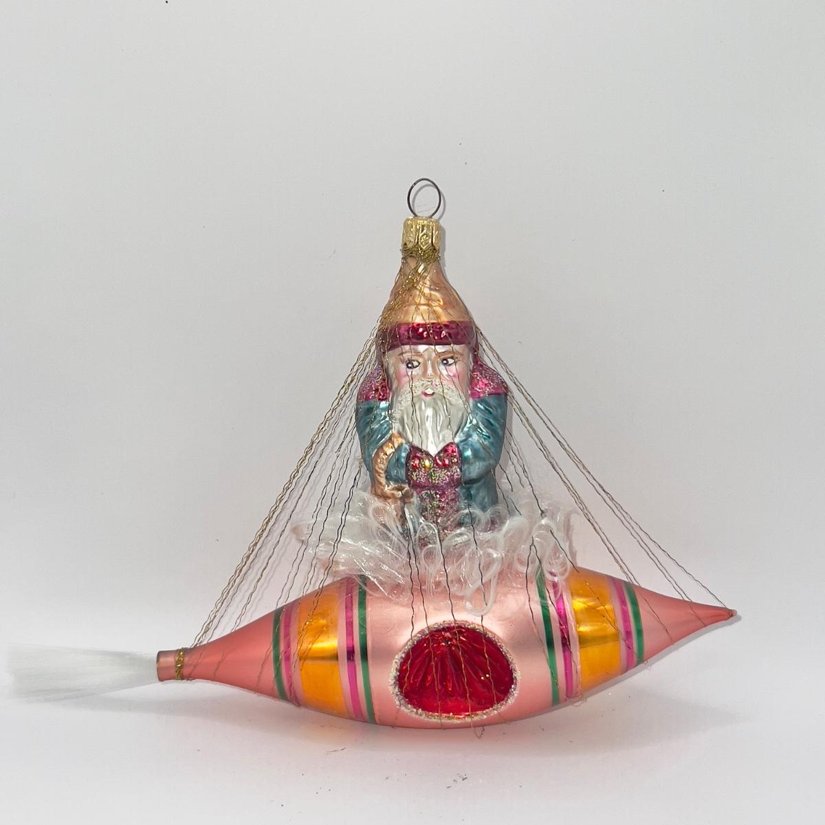 1262 Christopher Radko Handblown Glass Far Out Santa Ornament