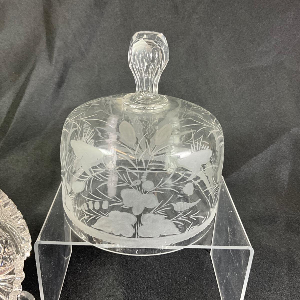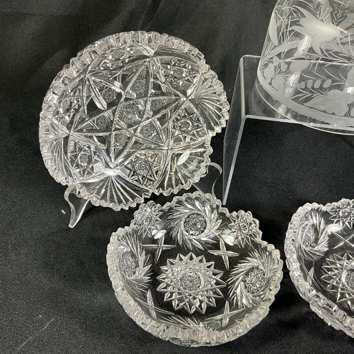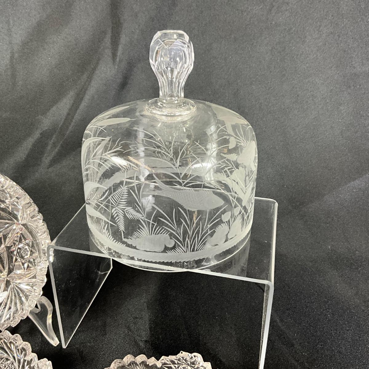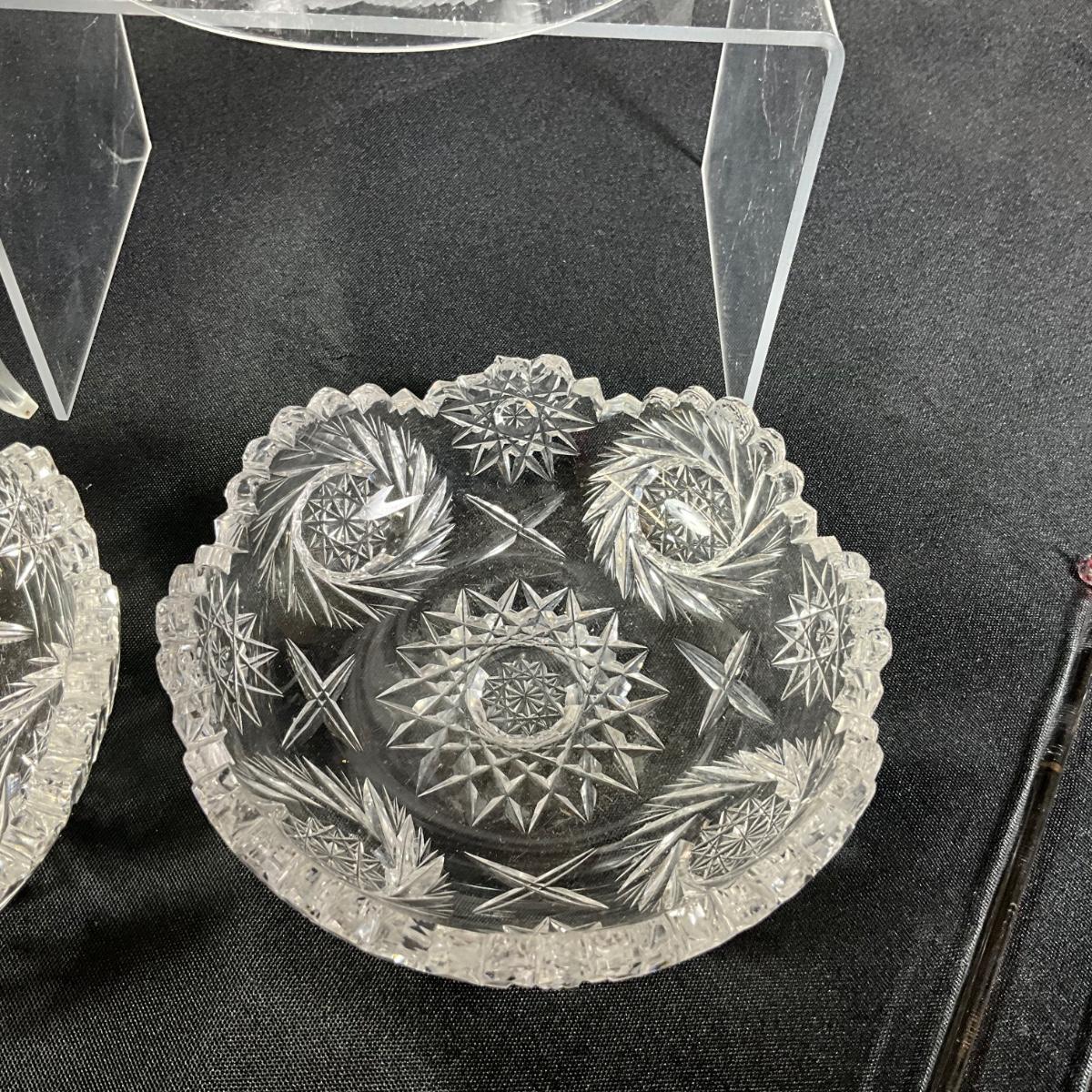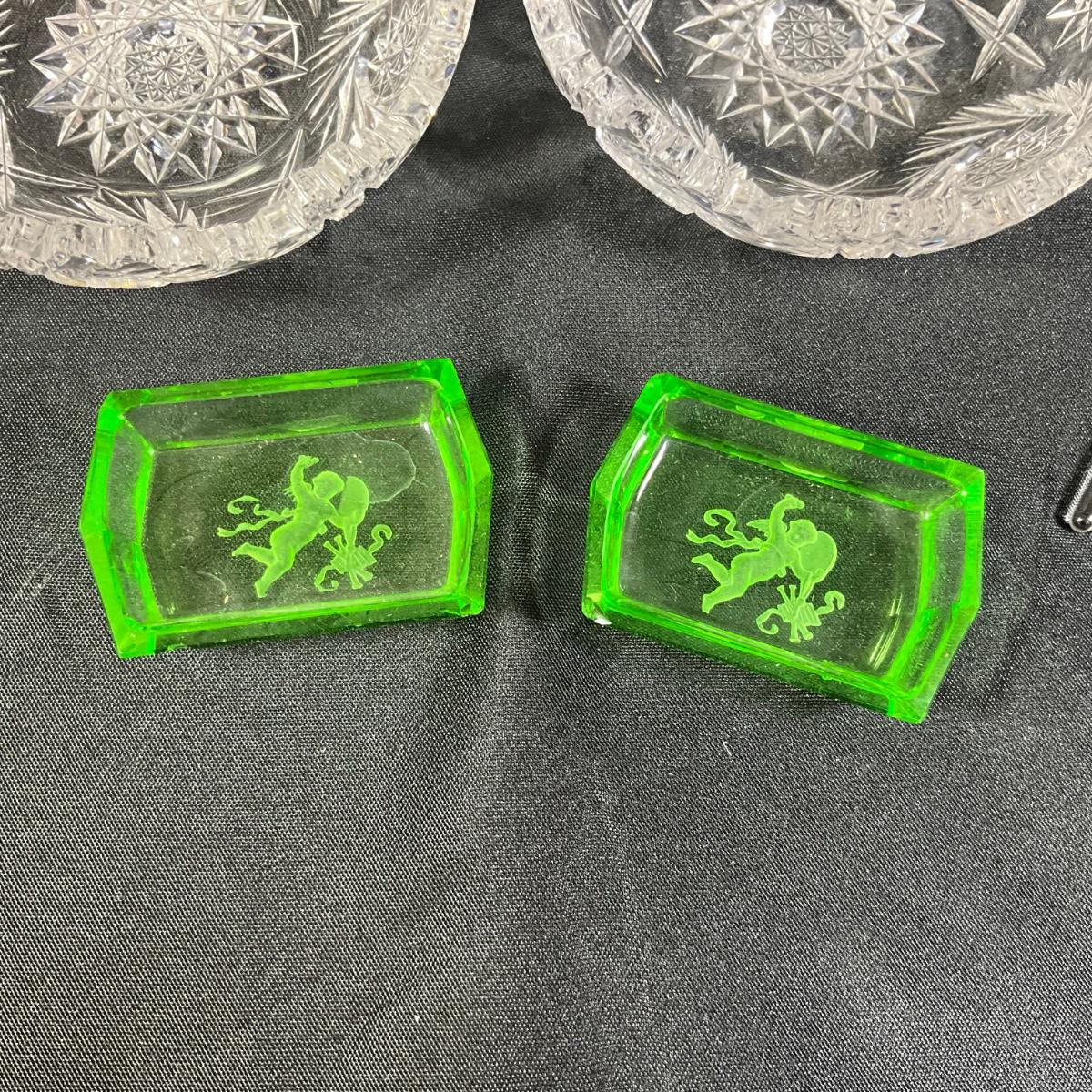 1269 Antique American Brilliant Cut Crystal Bowls, Etched Glass Dome Top, & Uranium Salts
