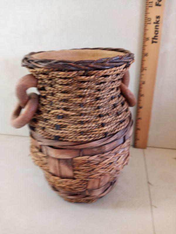 1269 = Medium Ceramic Vase wrapped in Bamboo