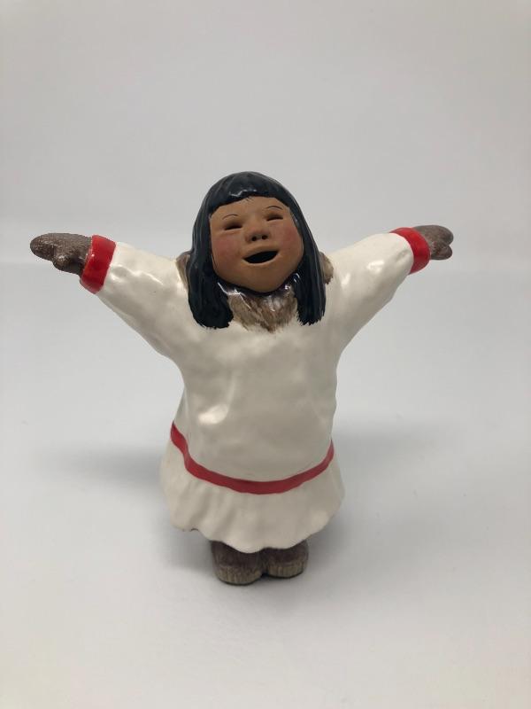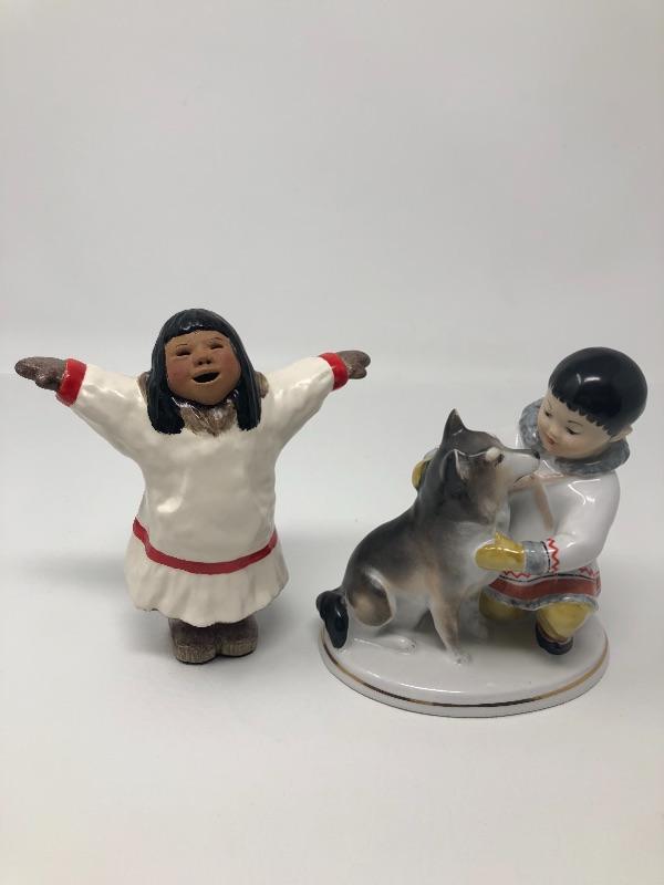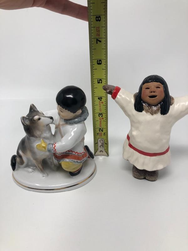 126:  USSR Eskimo Girl and Boy with Dog Signed Figurine