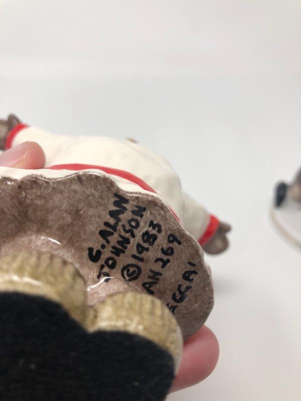 Two charming figurines. Girl is dated and signed underneath, C. Alan Johnson 1983. Boy is stamped and reads Made in USSR.
