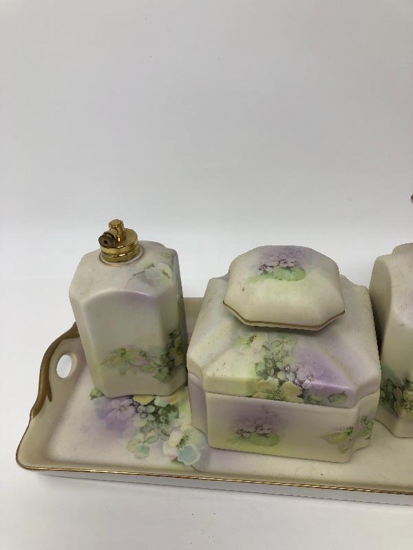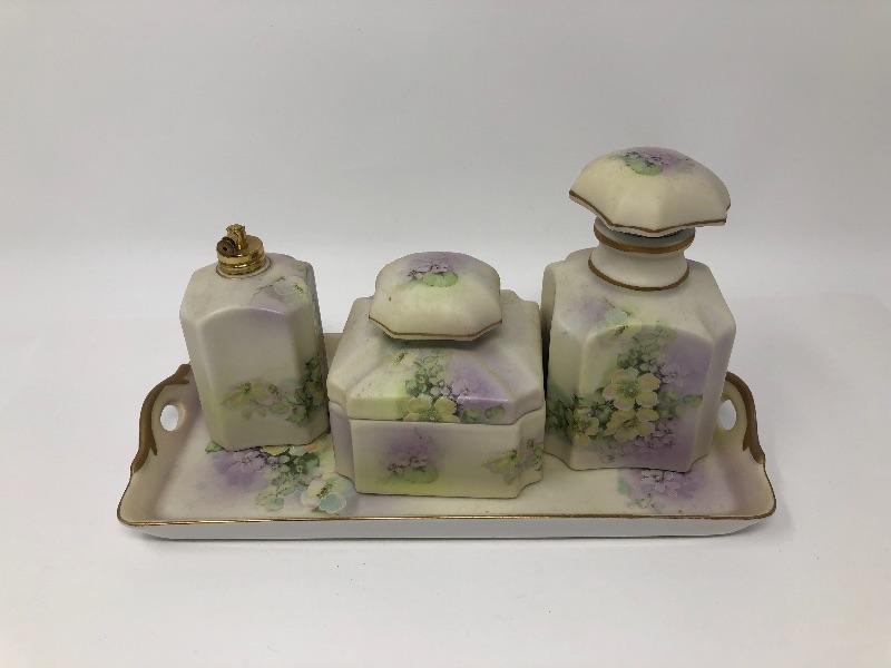 Porcelain Tray. Bottles and Perfume Spray Bottle