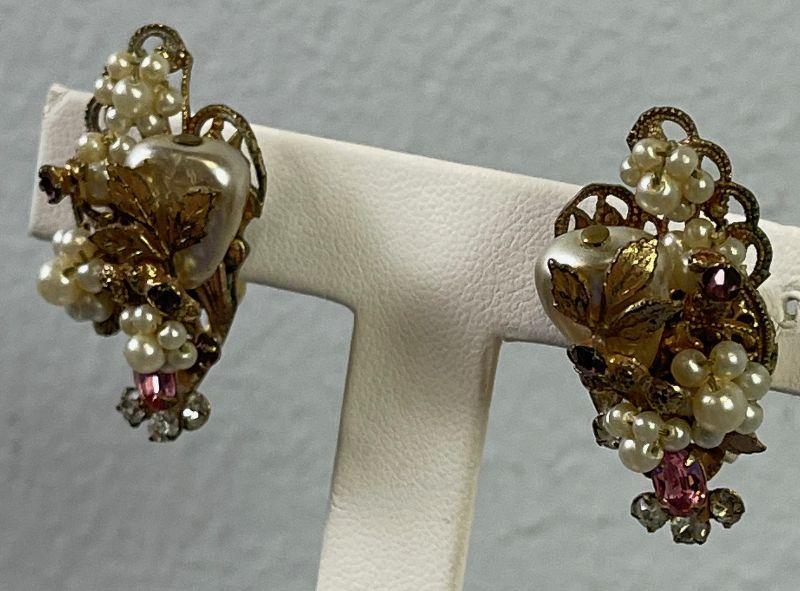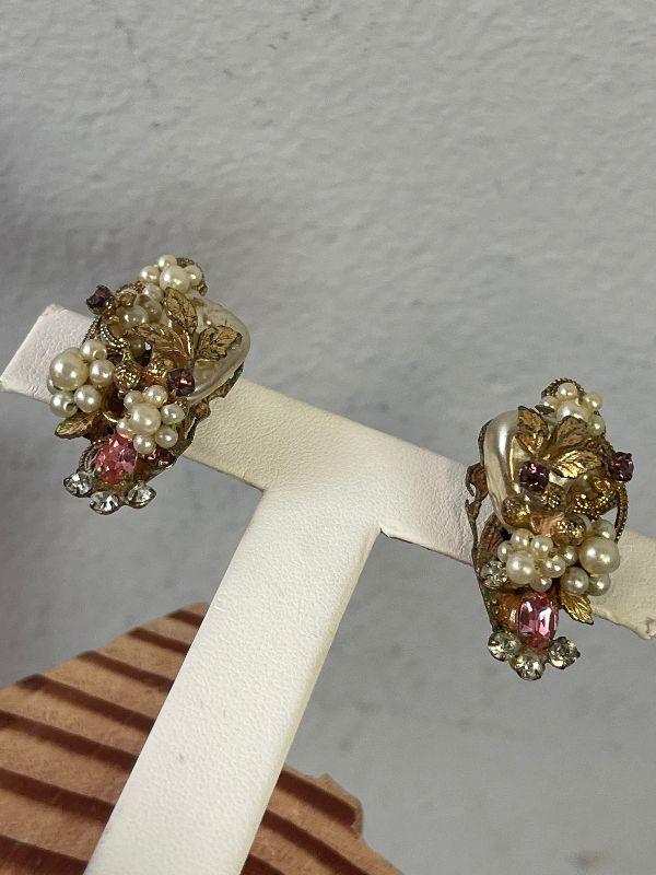 #127 Bejeweled Costume Vintage Clip on Earrings.