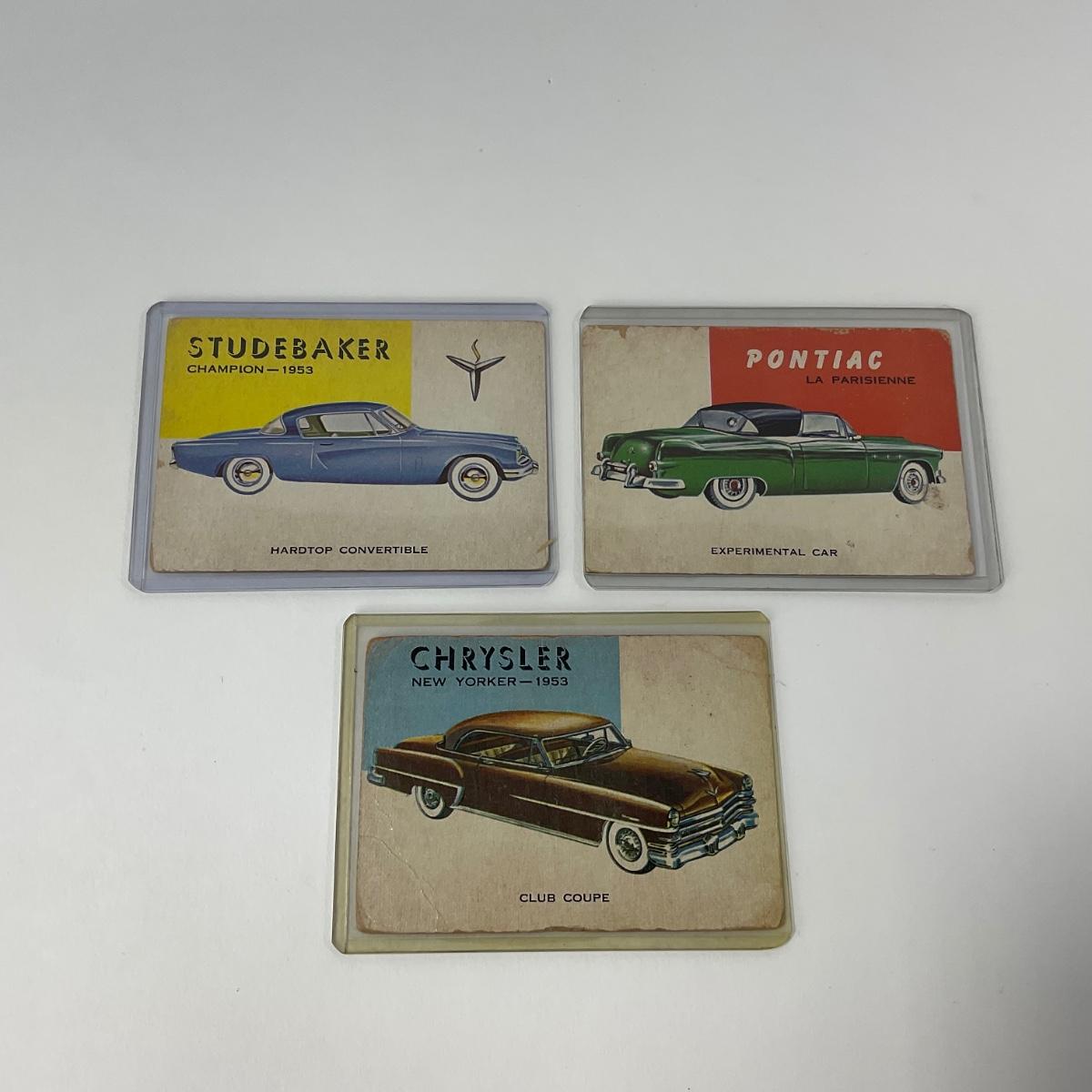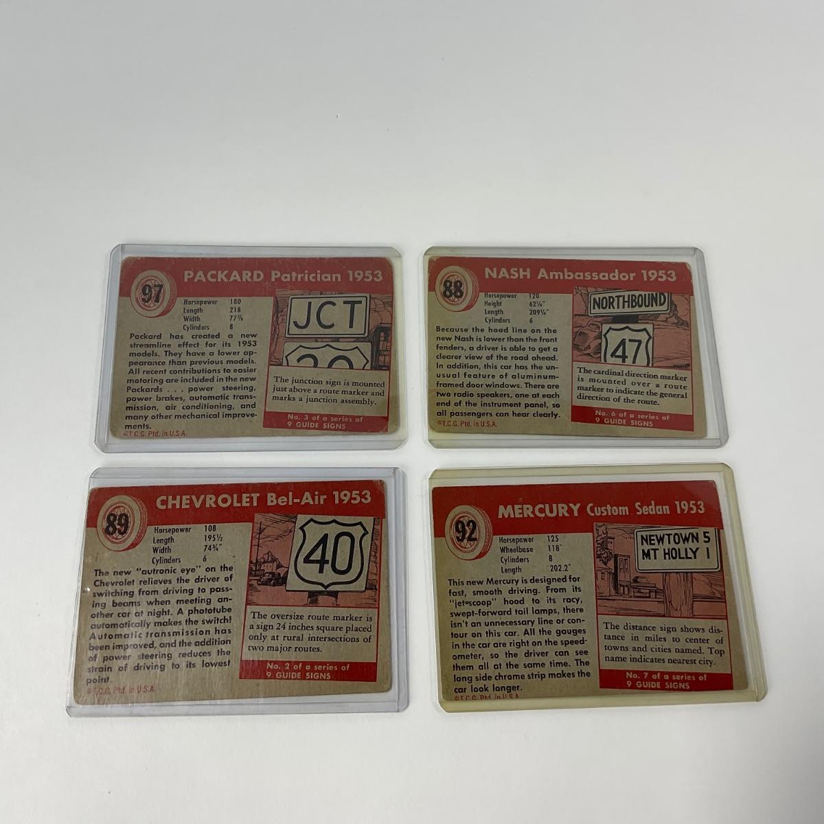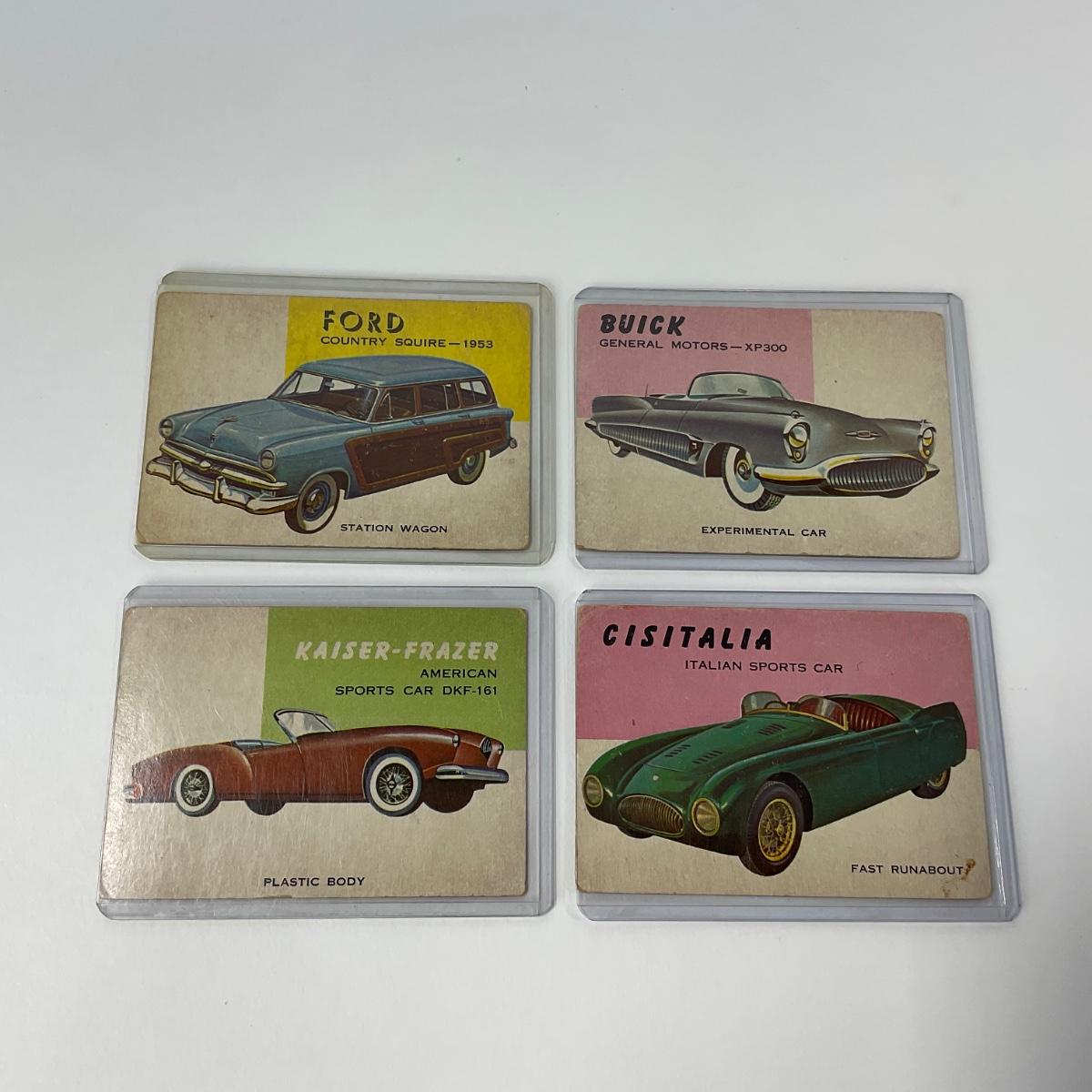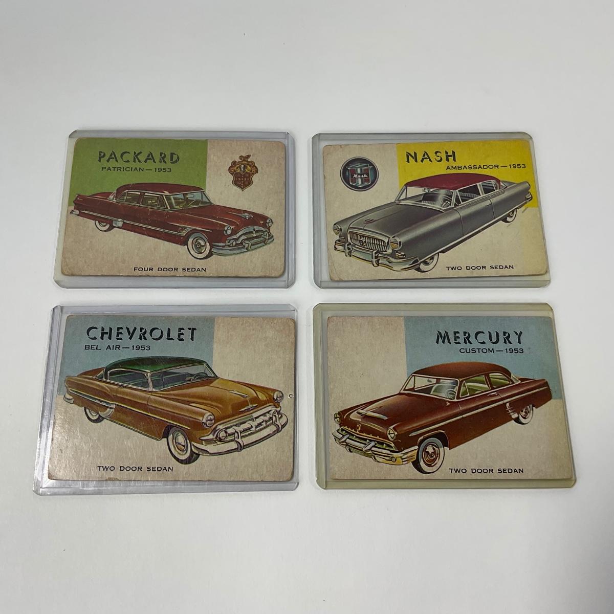 11 1953 Topps wheels of today car cards in plastic sleeves. Please see photos for details and condition. ::: Shipping is available on this lot. If you require shipping you must let us know at the close of the auction. We will coordinate with you after the item has been won. Shipping fees will include insurance up to or exceeding the value of all items being mailed. If you have any questions regarding this lot please contact the auctioneer either via this website, by direct email or by phone. PICK UP TIMES and other important information can be found in the TERMS and DESCRIPTION of the auction. Please take a look for pertinent information. Thanks!