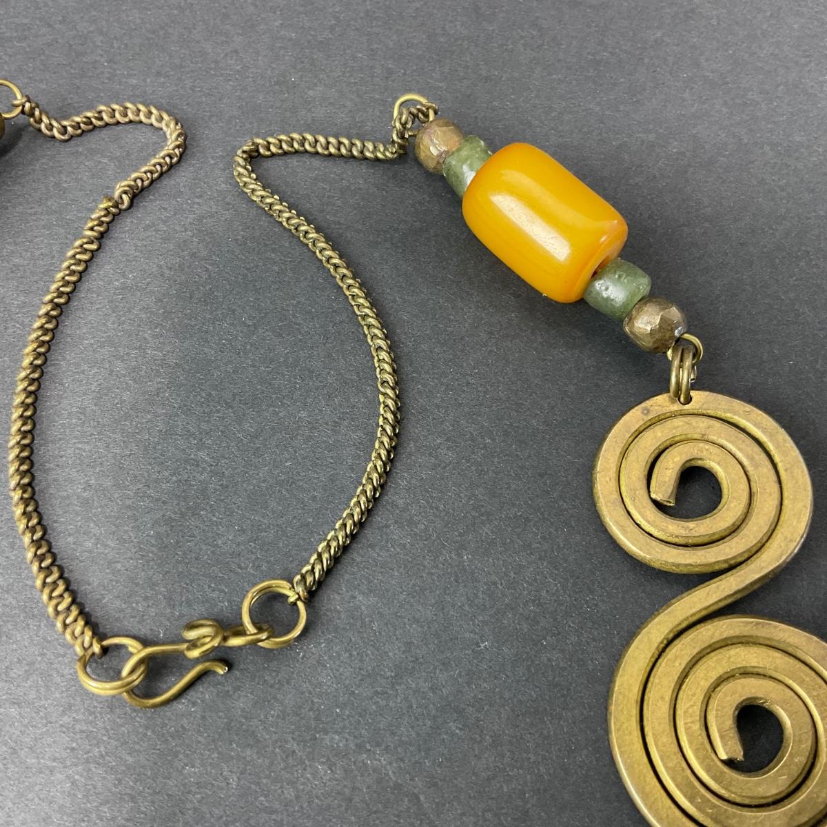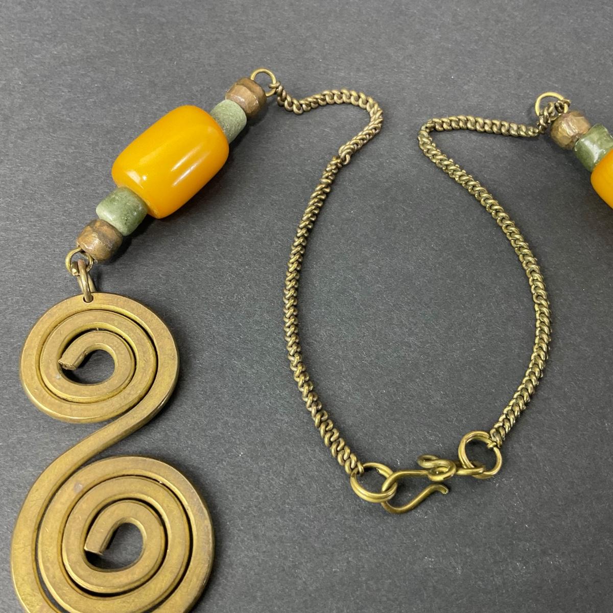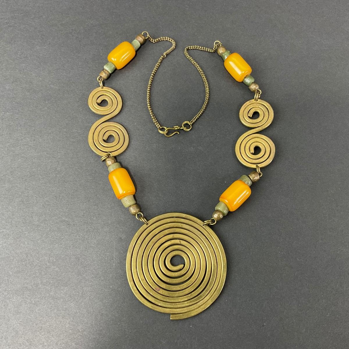 -127- COSTUME | Chunky Brass & Beaded Necklace