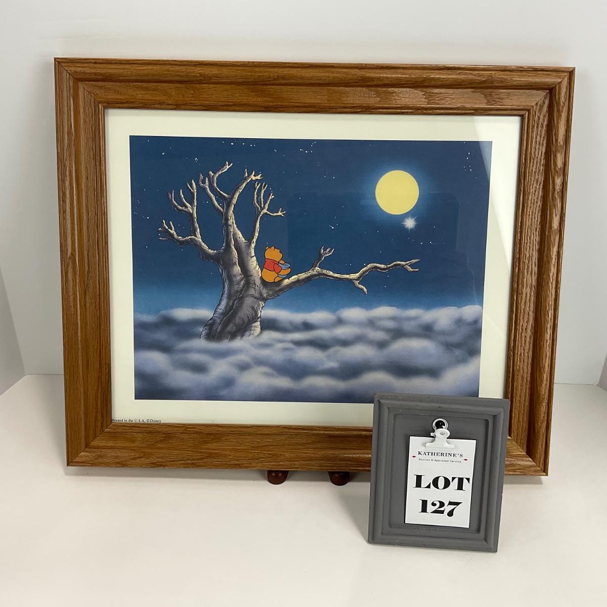 One Disney s Winnie The Pooh commemorative print framed. 14 inches by 17 inches. Please see photos for details and condition. Any condition statement is given as a courtesy to a client, is an opinion, and should not be treated as a statement of fact. Reference to condition written, oral or within a condition report shall not be regarded as a full account of condition and may not include all defects, alterations, or restorations. Absence of a condition report does not imply a lot is flawless or lacking imperfections or damage. Katherine’s Auction & Appraisal Service shall have no responsibility for any error or omission. Returns shall not be accepted on the basis of condition. ::: Shipping is available on this lot. If you require shipping you must let us know at the close of the auction. We will coordinate with you after the item has been won. Shipping fees will include insurance up to or exceeding the value of all items being mailed. If you have any questions regarding this lot please contact the auctioneer either via this website, by direct email or by phone. PICK UP TIMES and other important information can be found in the TERMS and DESCRIPTION of the auction. Please take a look for pertinent information. Thanks!