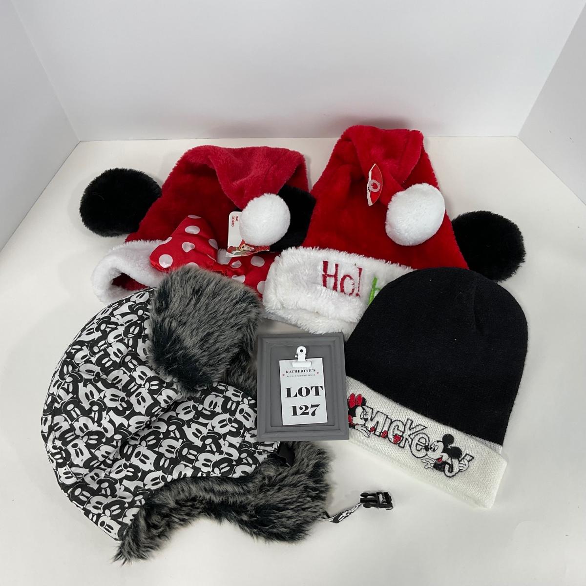 Four different assorted Mickey/Disney winter hats. Please see photos for details and condition. Any condition statement is given as a courtesy to a client, is an opinion, and should not be treated as a statement of fact. Reference to condition written, oral or within a condition report shall not be regarded as a full account of condition and may not include all defects, alterations, or restorations. Absence of a condition report does not imply a lot is flawless or lacking imperfections or damage. Katherine’s Auction & Appraisal Service shall have no responsibility for any error or omission. Returns shall not be accepted on the basis of condition. ::: Shipping is available on this lot. If you require shipping you must let us know at the close of the auction. We will coordinate with you after the item has been won. Shipping fees will include insurance up to or exceeding the value of all items being mailed. If you have any questions regarding this lot please contact the auctioneer either via this website, by direct email or by phone. PICK UP TIMES and other important information can be found in the TERMS and DESCRIPTION of the auction. Please take a look for pertinent information. Thanks!