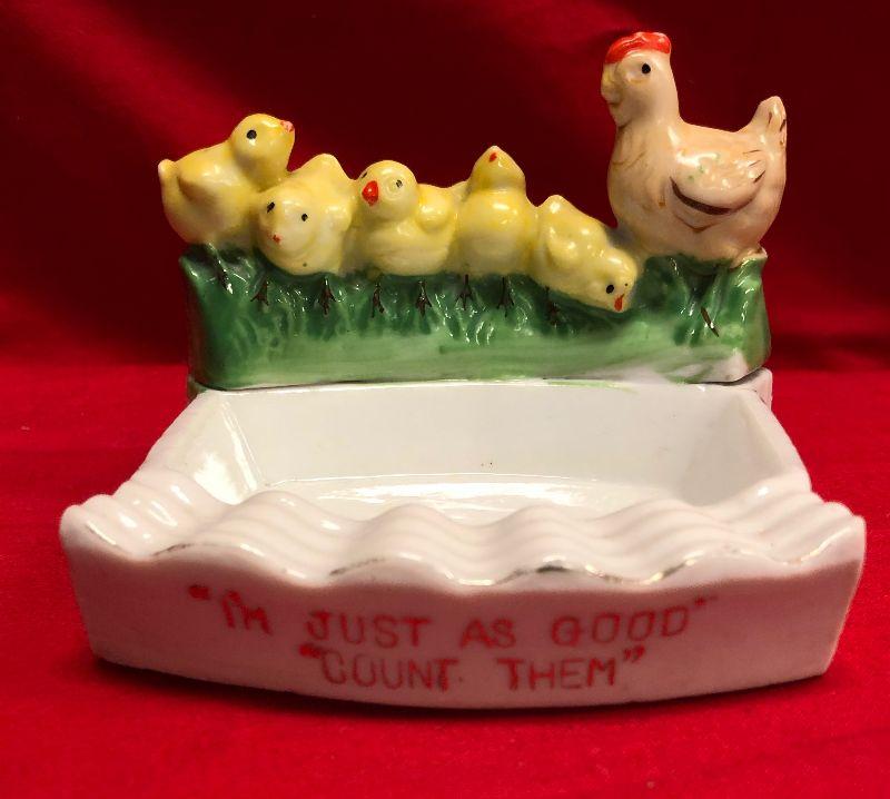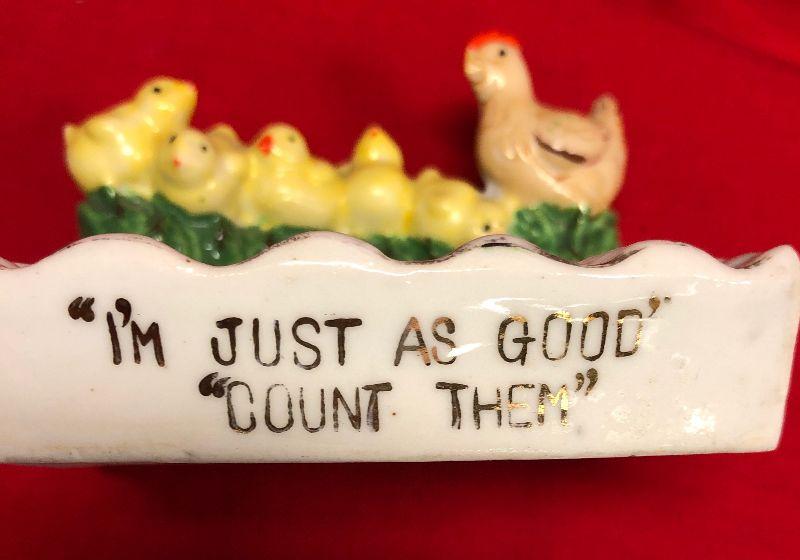 #127 "I'm Just as good Count them" Porcelain Japan Ring or Soap dish