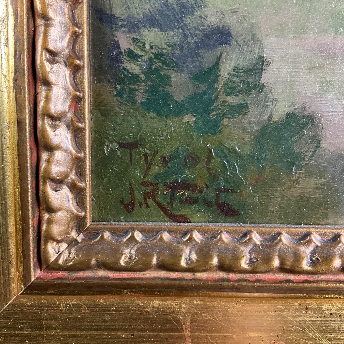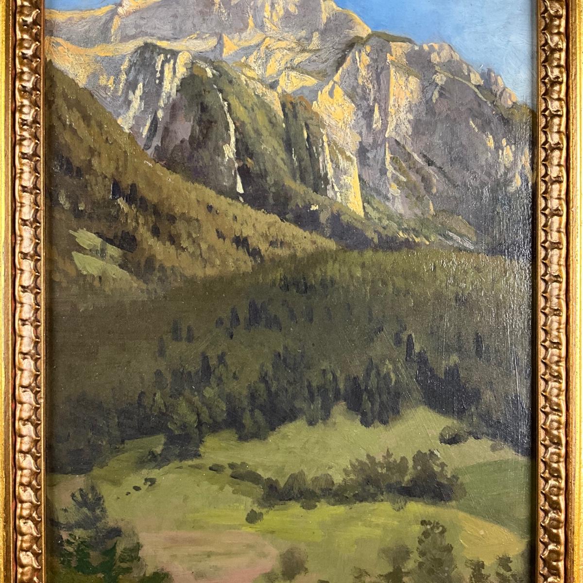 028 Signed European Mountain Landscape Oil Painting, Early–Mid 20th Century