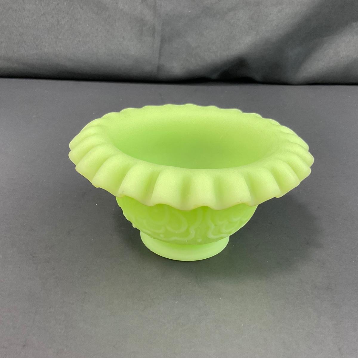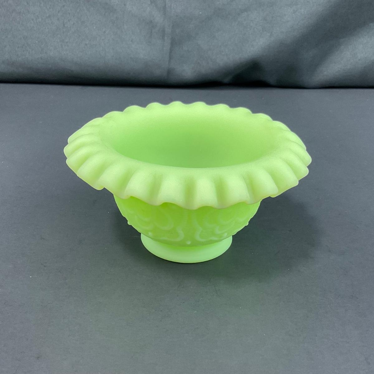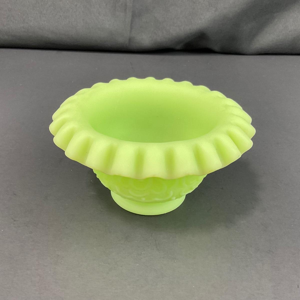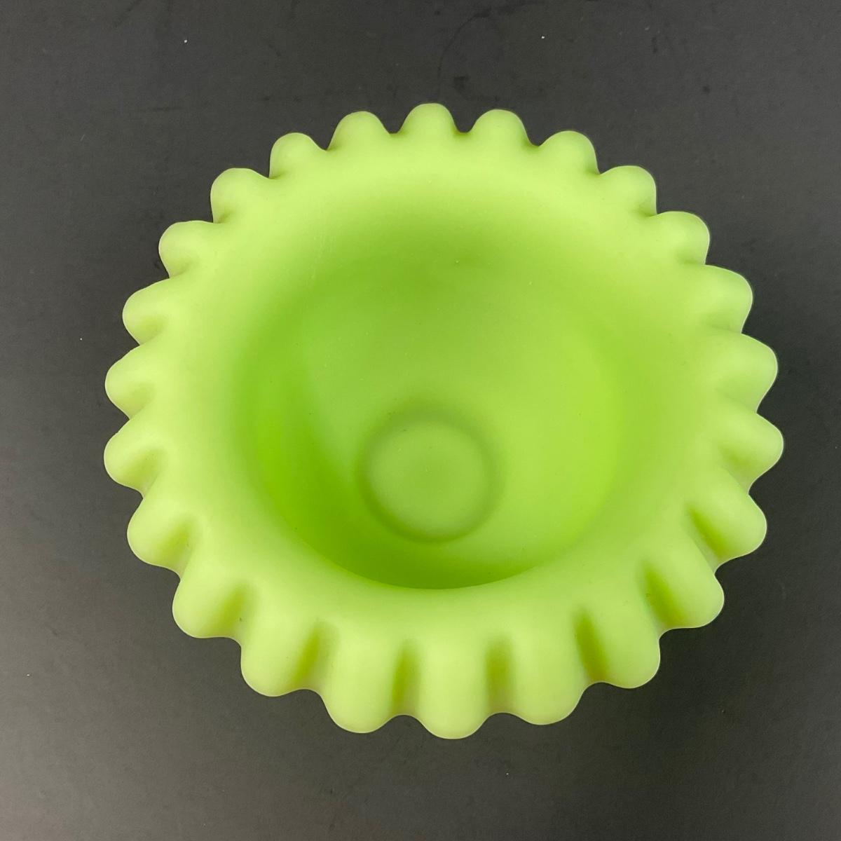 -127- URANIUM | Fenton Satin Custard Glass Ruffled Edge Fairy Lamp Base