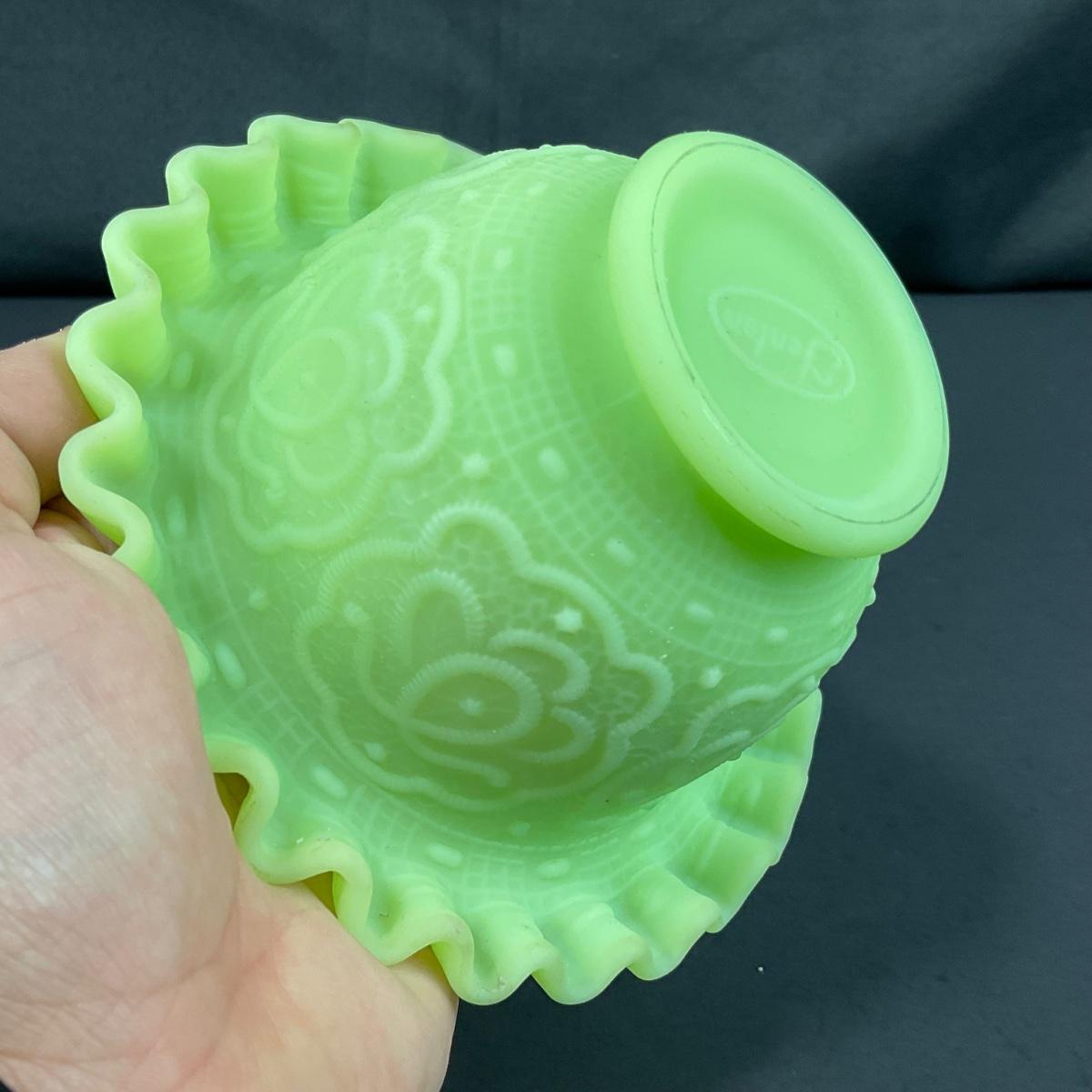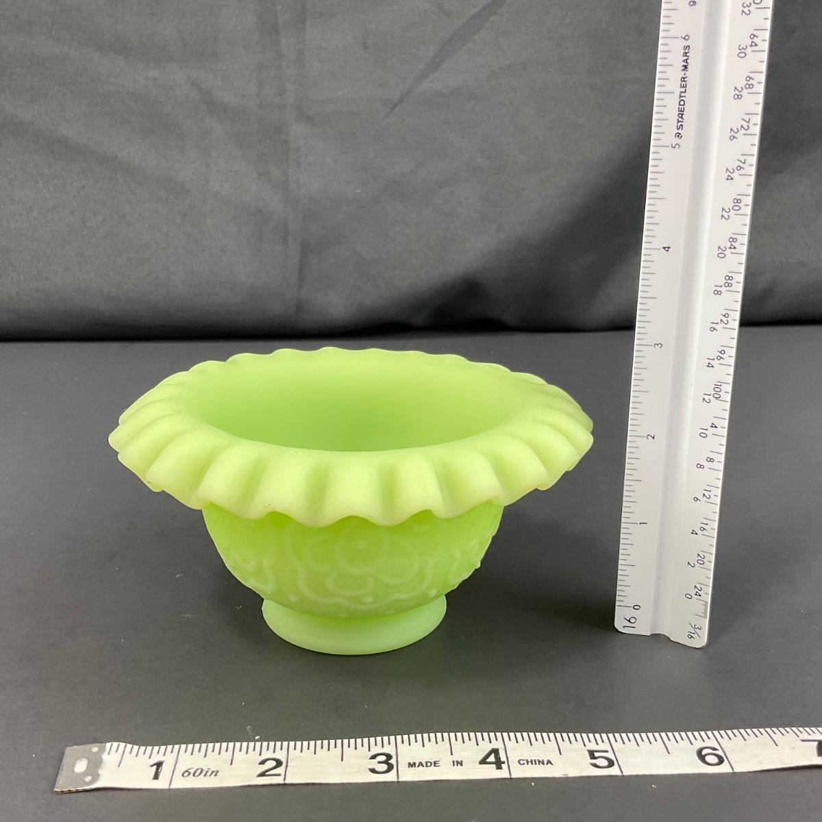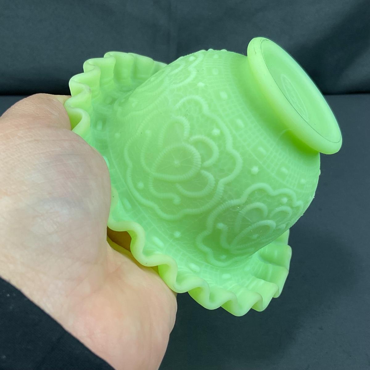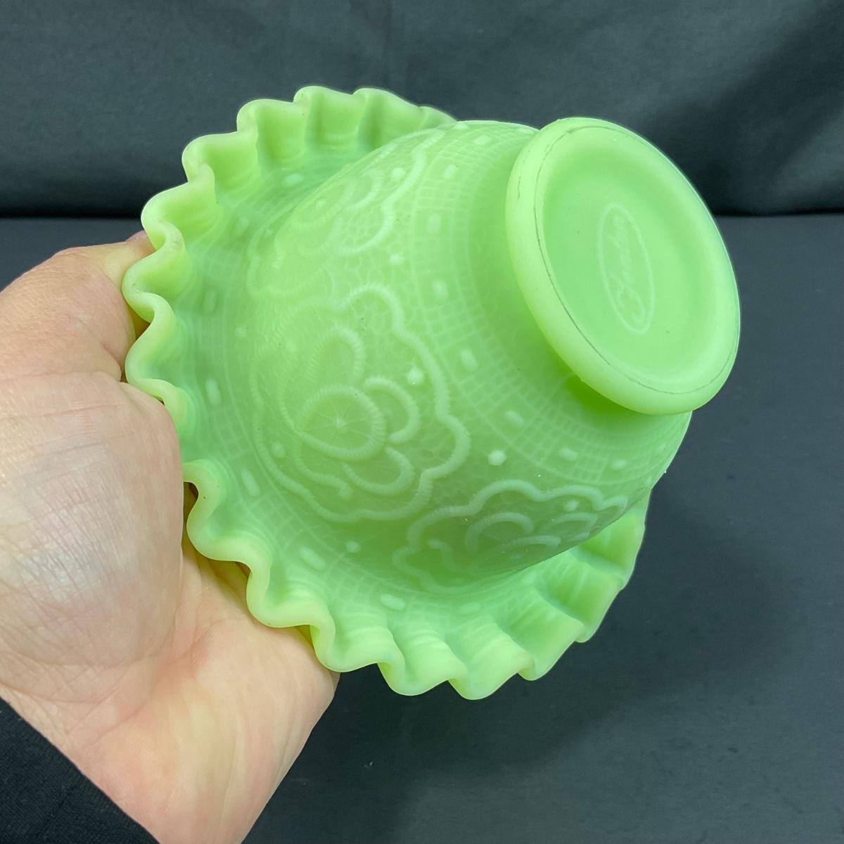 -127- URANIUM | Fenton Satin Custard Glass Ruffled Edge Fairy Lamp Base