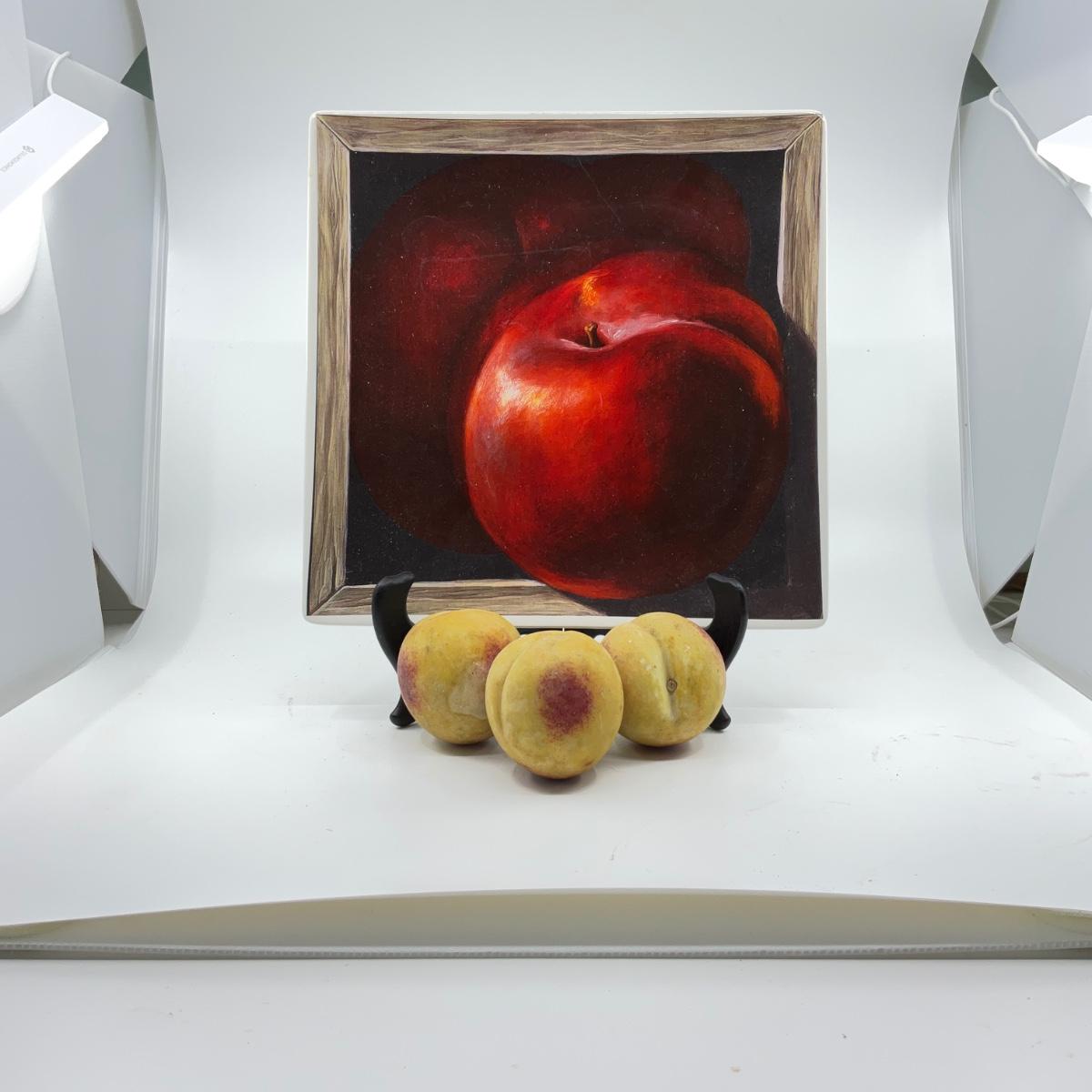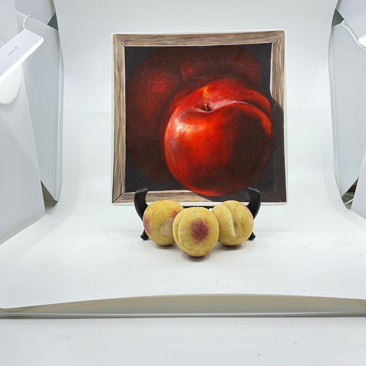 1270 Large Peach Serving Plate with Alabaster Peach Fruit