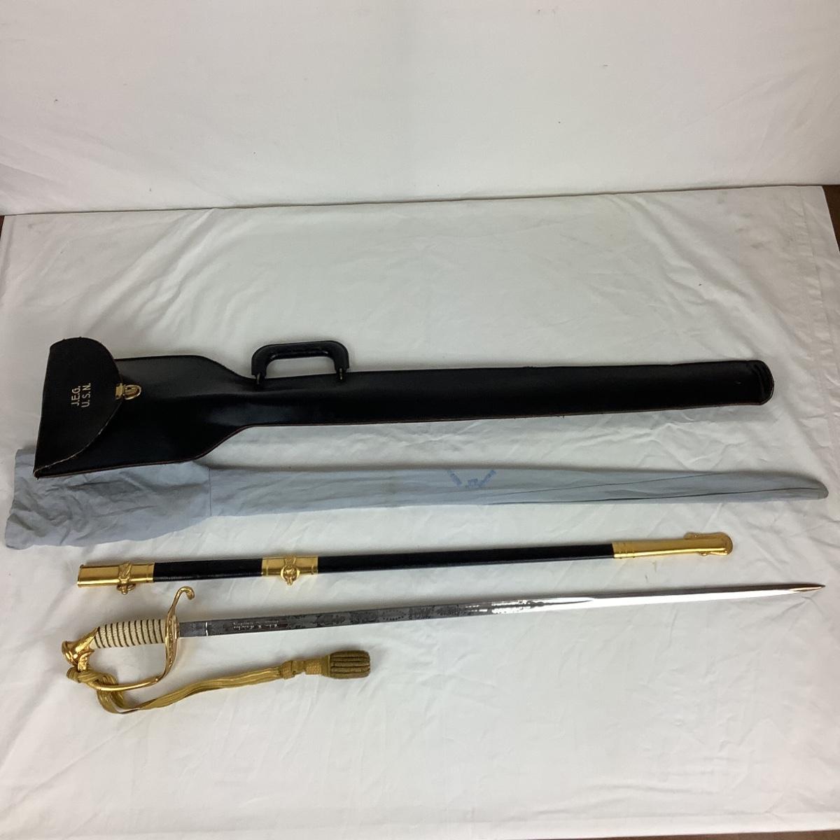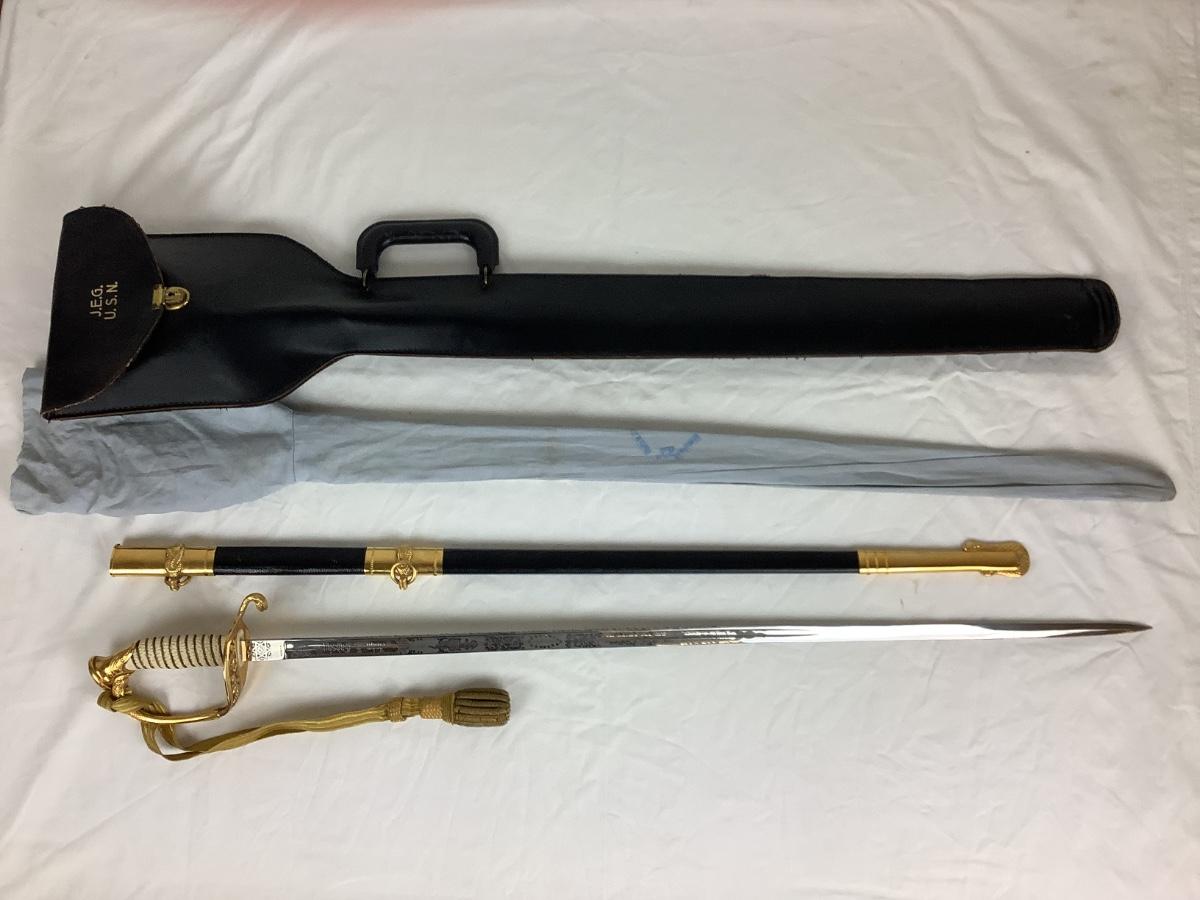 Hilborn Hamburger U.S. Navy Officer Dress Sword, Sheath & Leather Storage Case, made in Germany. Excellent condition.