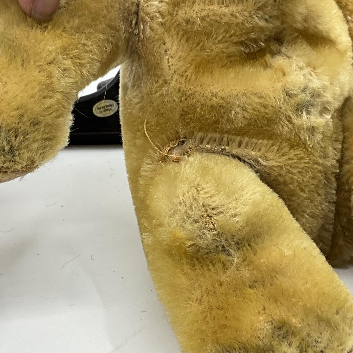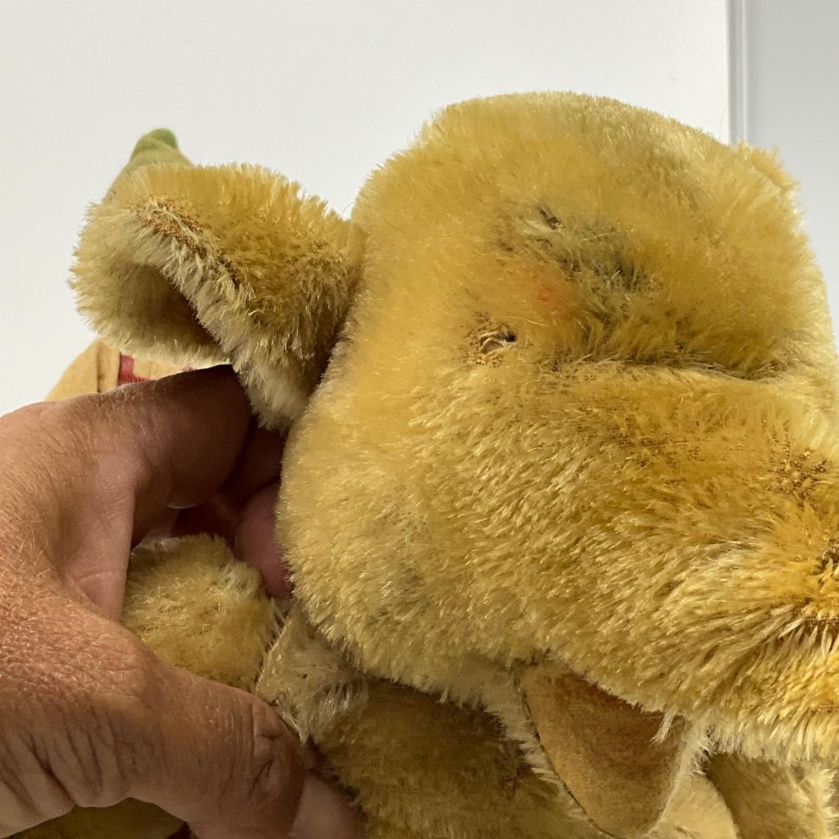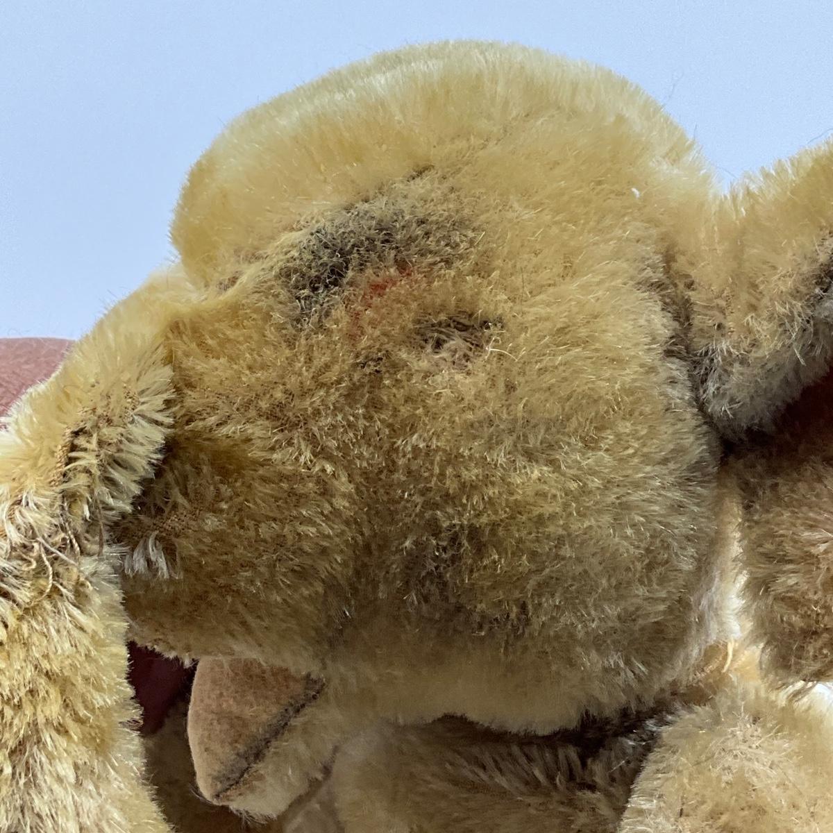Steiff Elephant measuring 10" high is missing his eyes and has a name written on his foot