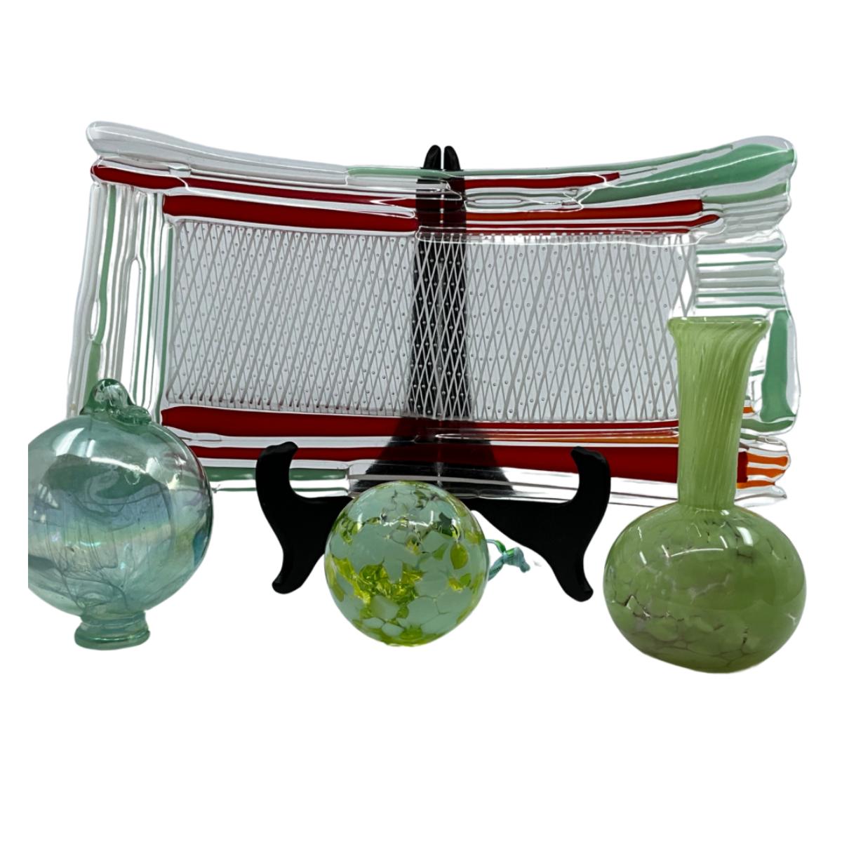 1275 Art Glass By Jacobson 2010 with Glass Vase and Decorative Balls