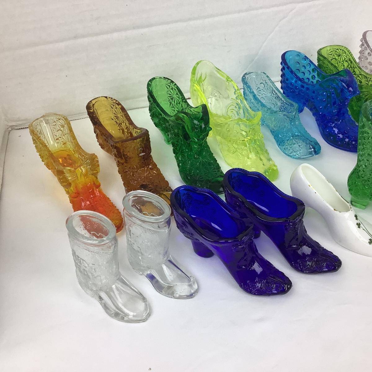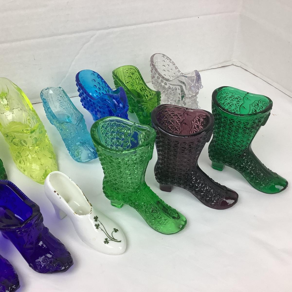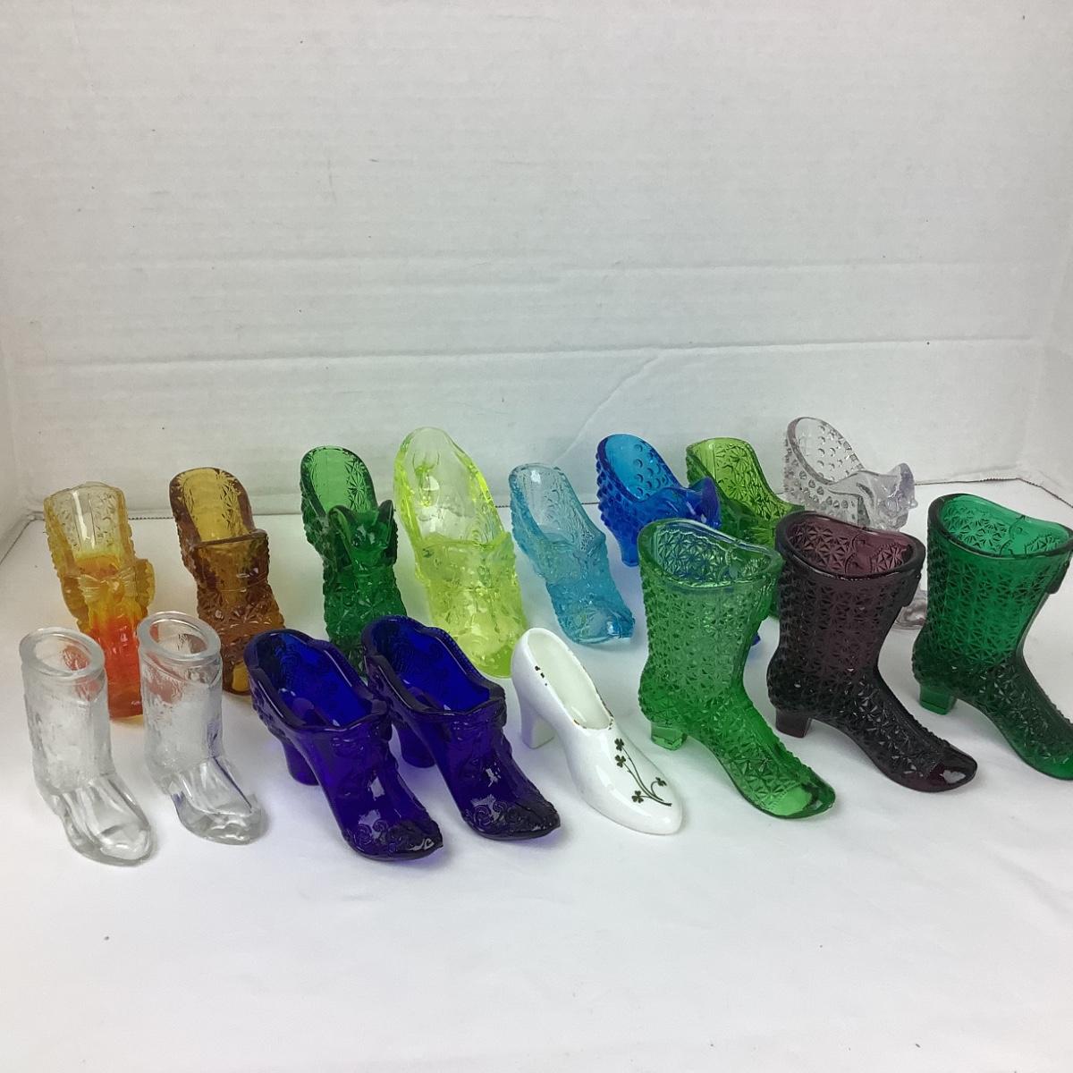 Lot contains 16 assorted glass shoes