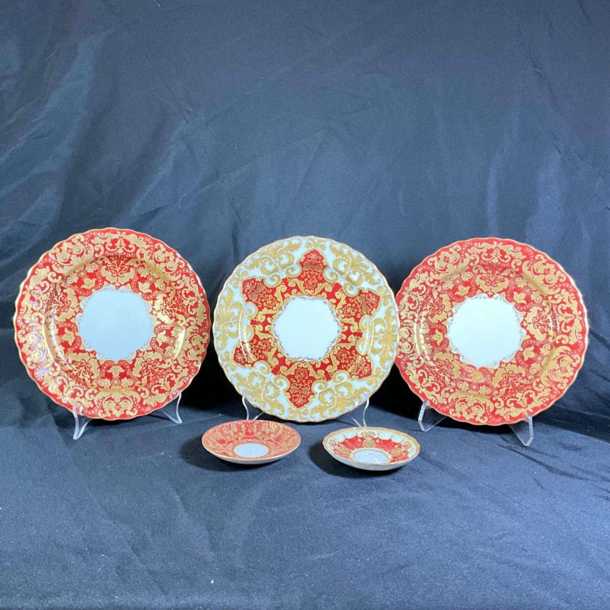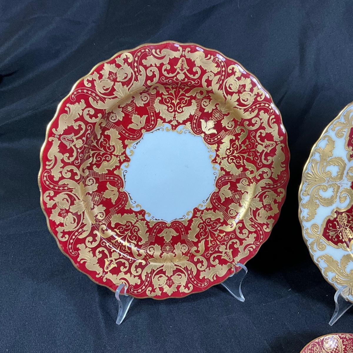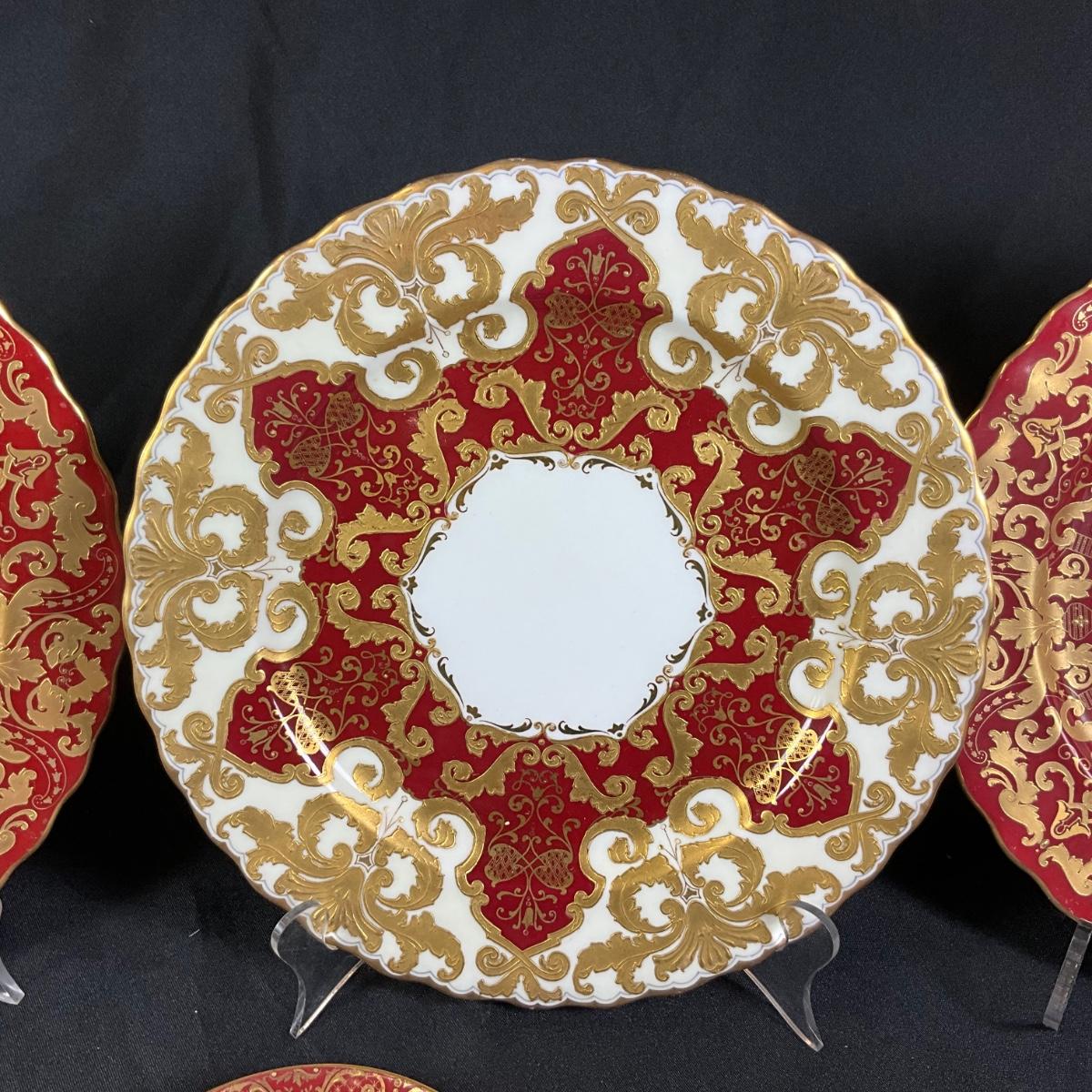 1278 Antique Royal Doulton Burslem England Burgundy & Gold Dinner Plates