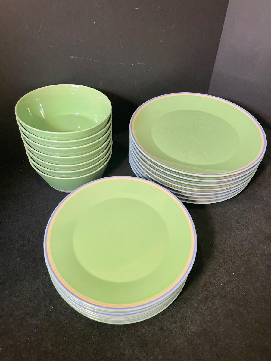 Includes 8 dinner plates, 8 salad plates and 7 bowls.