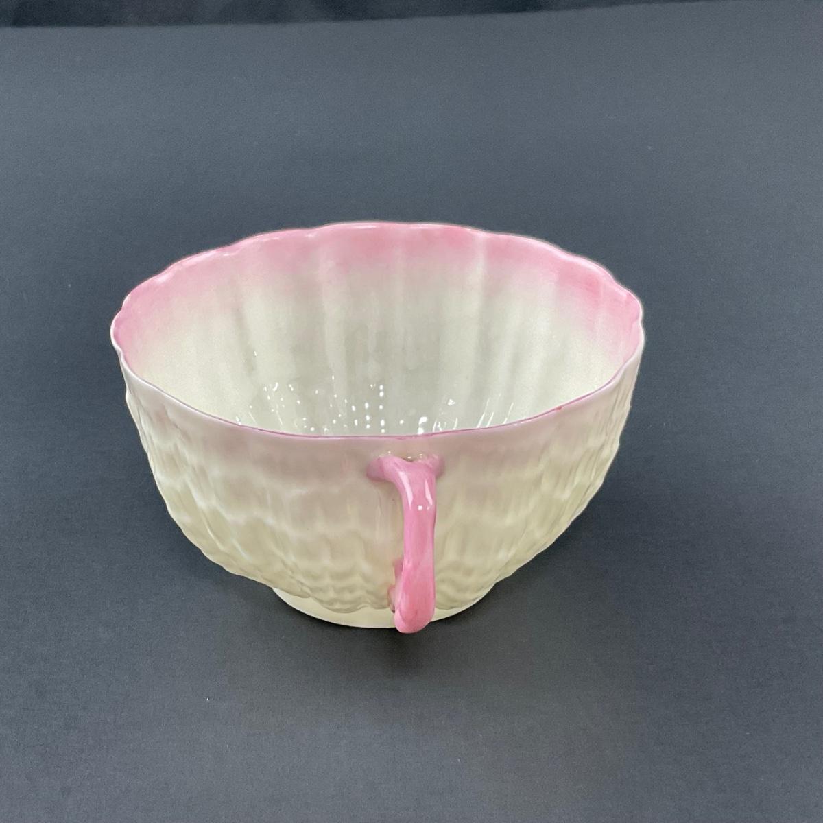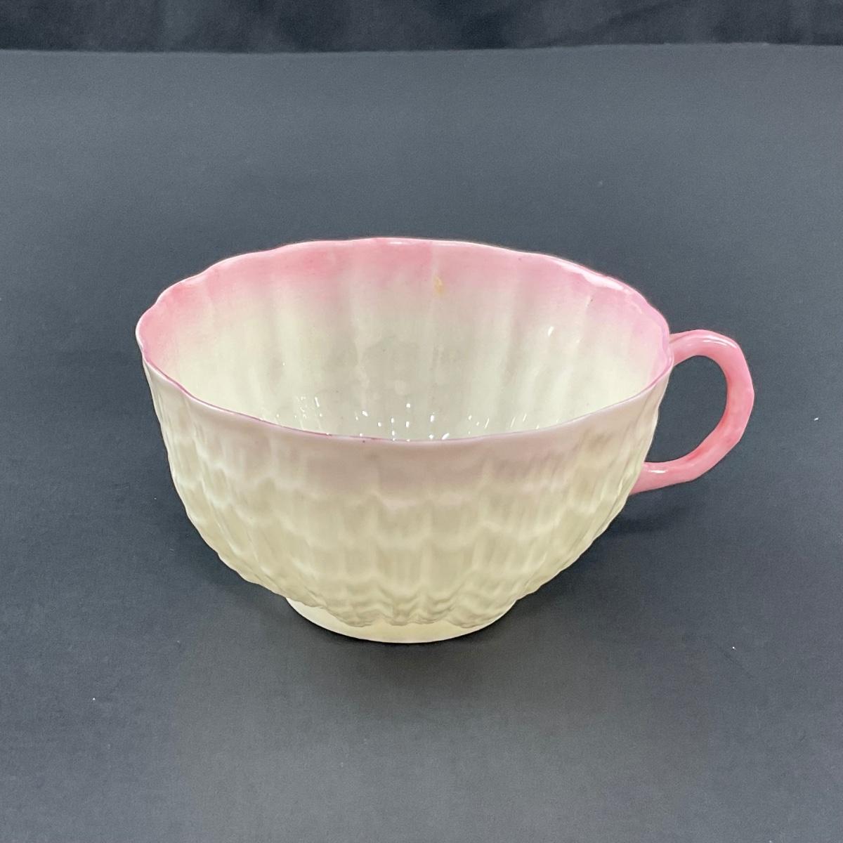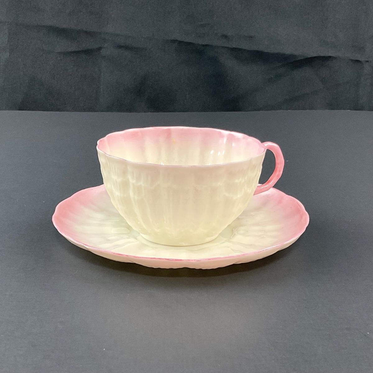 -128- BELLEEK | Teacup & Saucer | Tridacna Shell Pink Pattern | 2nd Mark
