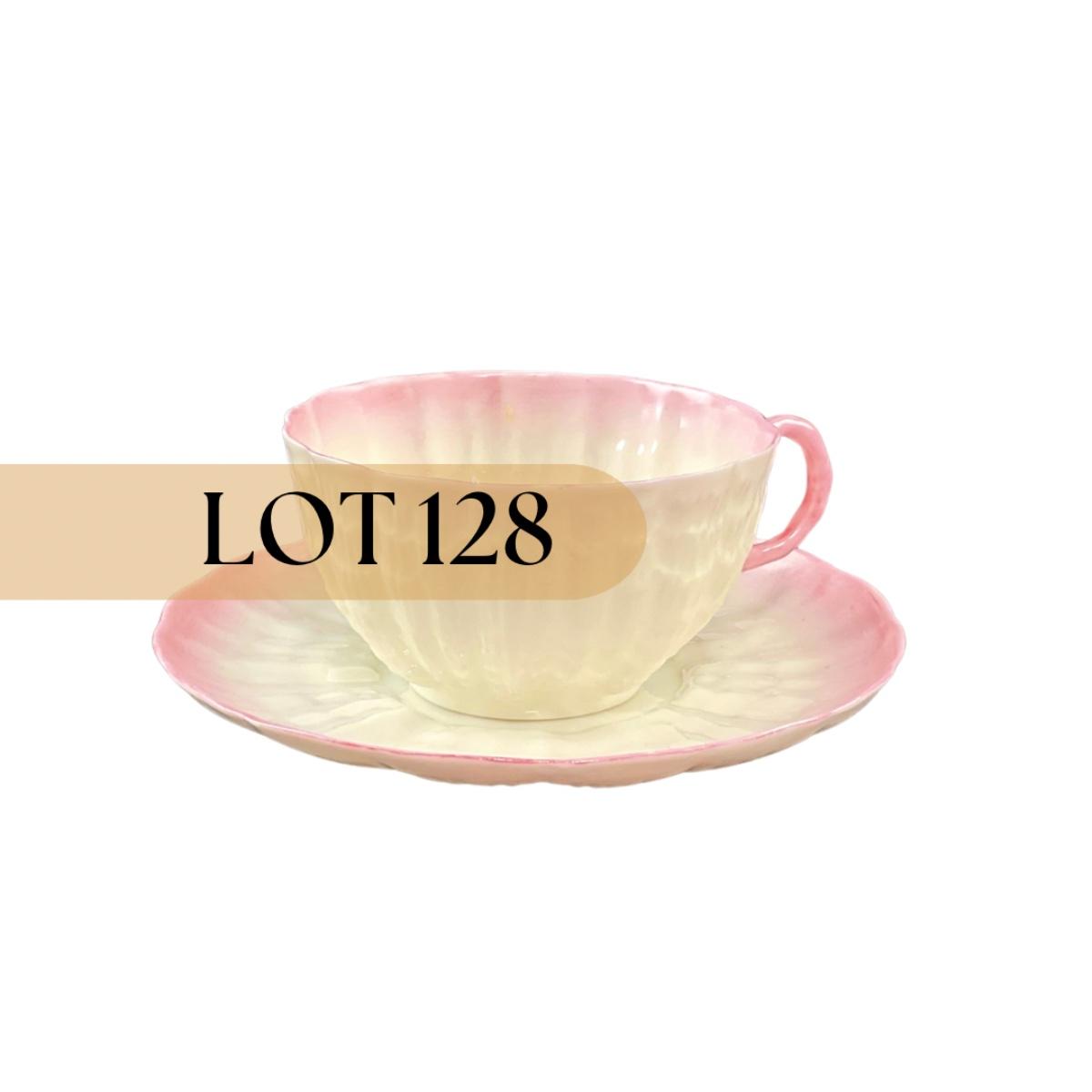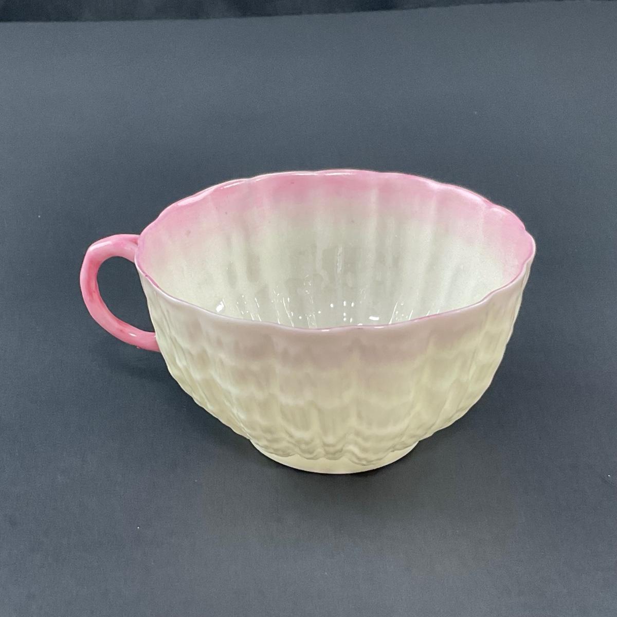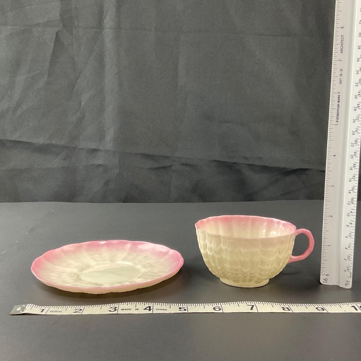 -128- BELLEEK | Teacup & Saucer | Tridacna Shell Pink Pattern | 2nd Mark